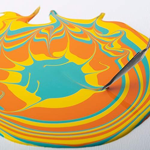 粘度が低く、さらさらとしたメディウムで、絵具が混じり合わずポーリングに適しています。乾燥後は透明になり、ツヤが出ます。