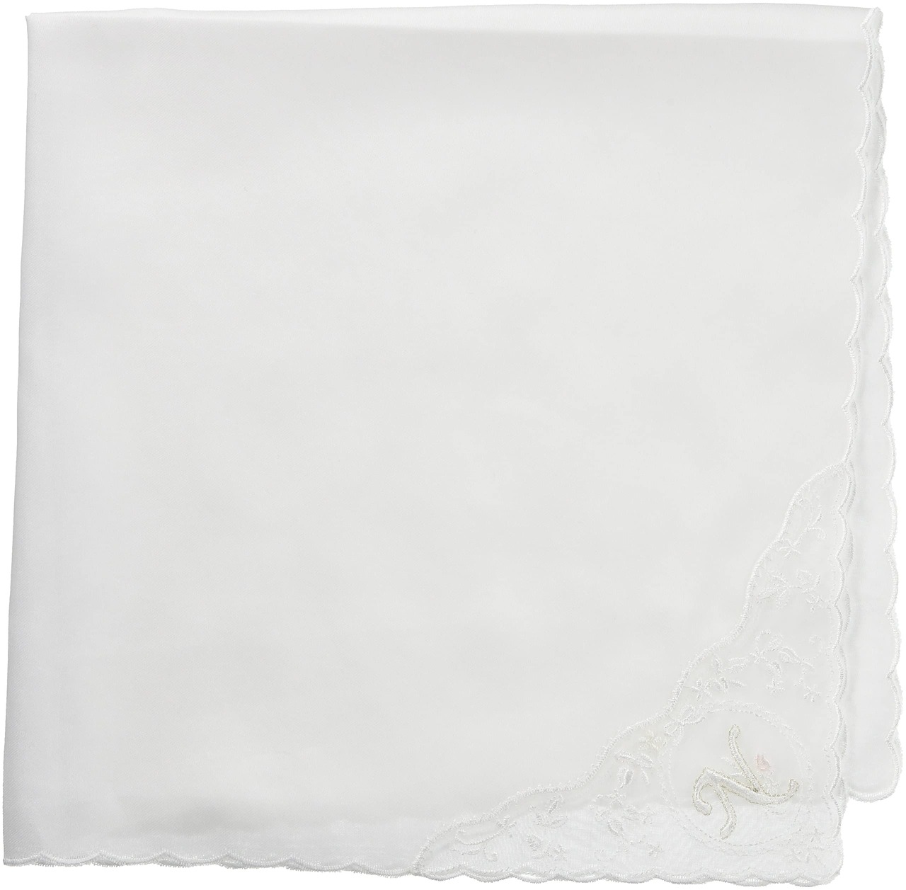 透け感のあるオーガンジーをコーナーレース風に刺繍加工しています。繊細なイニシャル刺繍にピンクの小花がアクセント。日本製ならではの仕上がりになっています。送る方のイニシャルを選んで、プレゼントとしてもおすすめです。イニシャルは、A、C、E、H、I、K、M、N、R、S、T、Yの12文字です。