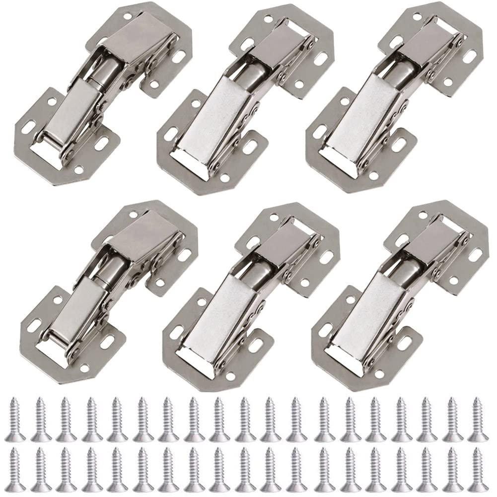 ステンレス製 スライド蝶番 キャビネットヒンジ 補修 固定金具 扉 窓 家具丁番 取り付け簡単 6個セット (ネジ付き48枚)