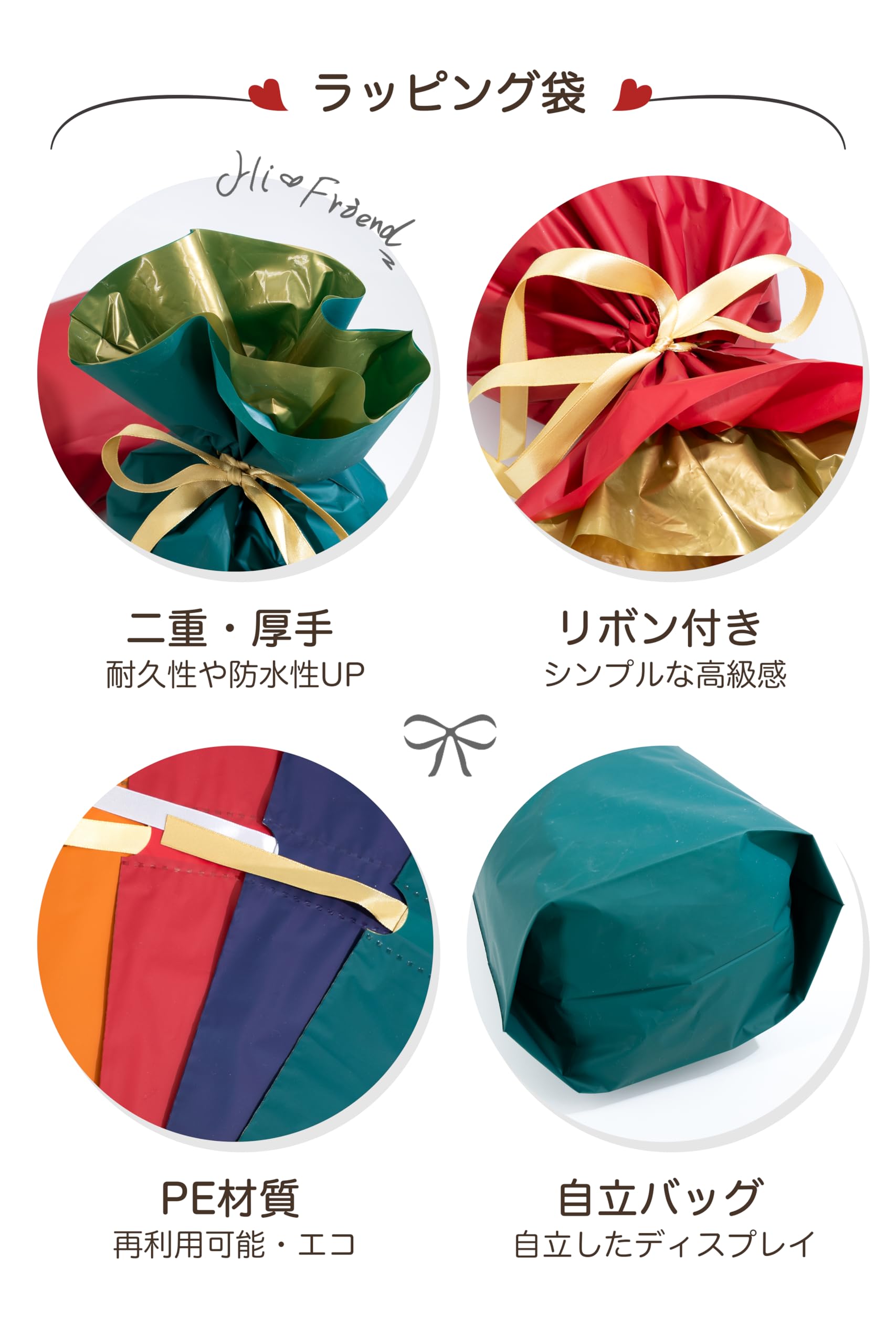 【バイカラー・PE素材】ラッピング袋はバイカラーデザインを使用して、内側と外側で色が違います。素材は安全安心なPE素材を採用し、毒性もなく無臭でリサイクル利用できます。更に二重材料の設計で、防水性と耐久性が優れます
