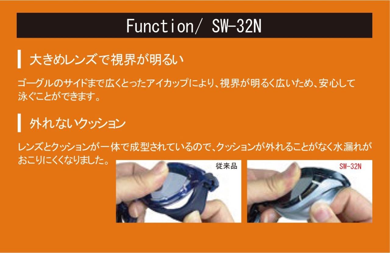 [スワンズ] スイミングゴーグル フィットネス 大人用 クッション付き くもりどめ SW-32N /SW-45N