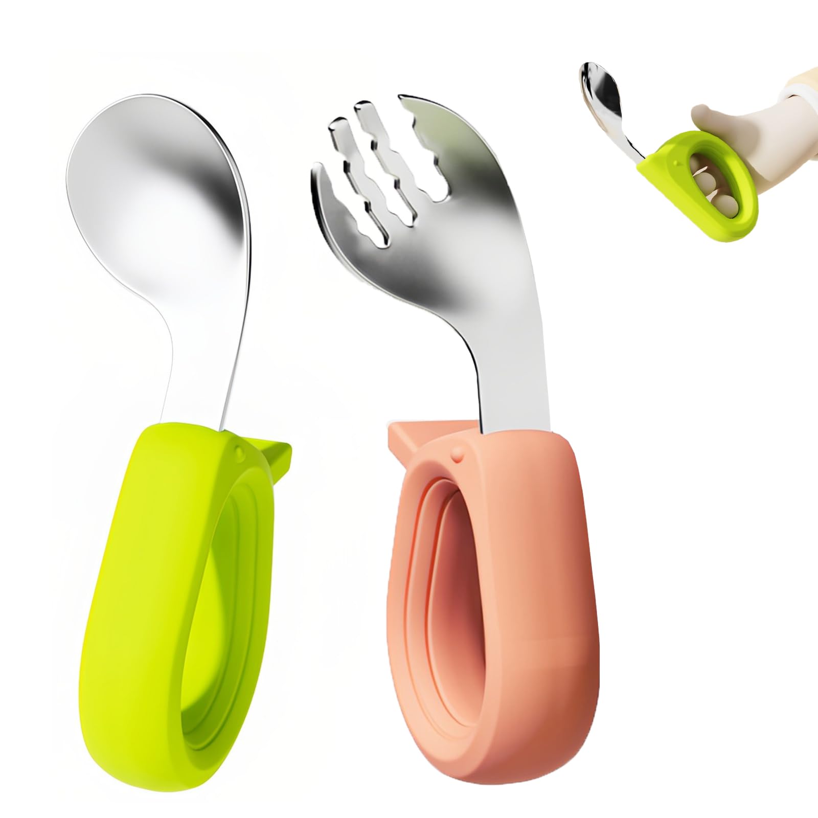【商品情報】:スプーン:10.5mm*3.5mm、フォーク:10.5mm*3.5mm、材料:ステンレス316+食品級シリコン材料、セット内容:グリーンスプーン*1、ピンクフォーク*1、年齢:6ヶ月以上適用。