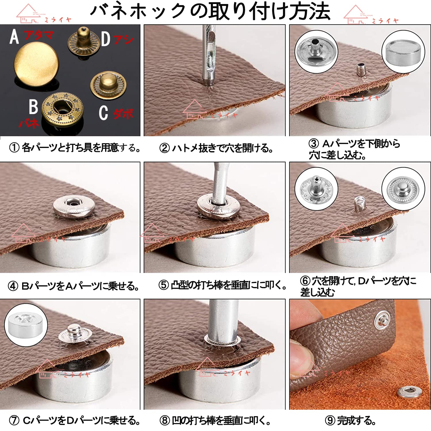 【取り付け簡単】:ホックと打ち具の組み合わせが大変便利です。使用方法は大簡単で、初心者からプローまで革製品などのハンドメイド作品を簡単に取り付けられます。