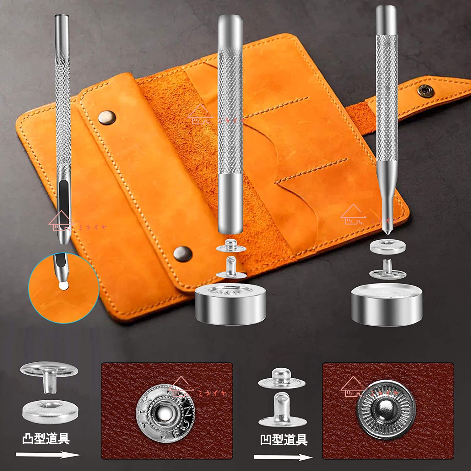 【特価在庫】ミライヤ レザークラフト バネ ホック打ち具セット 15mm 15組セット スナップ ボタン 穴あけポンチ 打ち具 打ち台 ハトメ抜き 手芸 ハンドメイド 革DIY (合計15組+4点打ち具) | GIGATERA