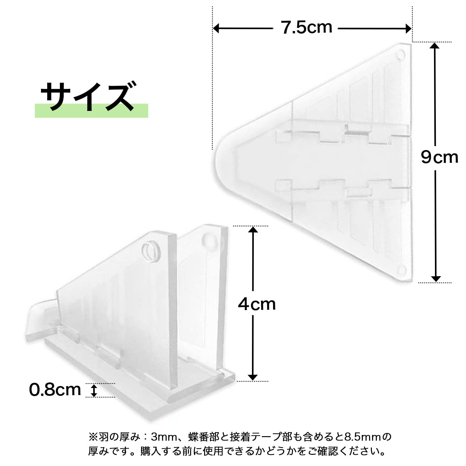『ネジ不要で取り付け簡単』窓や横開きの扉の枠部分に両面テープで貼り付けるだけで設置できます。窓 引き戸ストッパーの羽根を立てるや寝かせるだけで、大人が簡単に窓を施錠、解錠できます。2個以上設置することで、開ける難易度を強化することができます。※羽の厚み:3mm、蝶番部と接着テープ部も含めると8.5mmの厚みです。