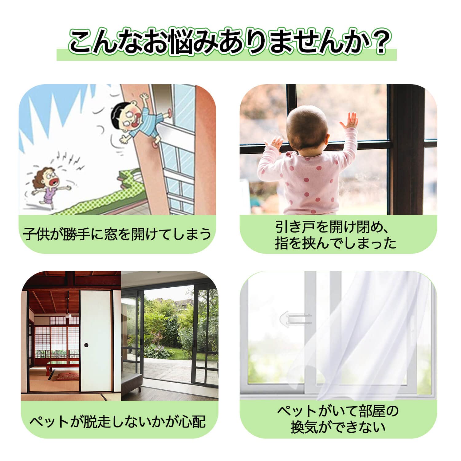 『強力ロック・安全対策』子供自分で部屋で遊んでいる時、思いがけない事故を防止できる安全ロックです。窓を少し開けた状態でロックをかけられます。タイミングを気にせず、ペットがいても部屋の換気ができます!より安心安全な環境を作りましょう。