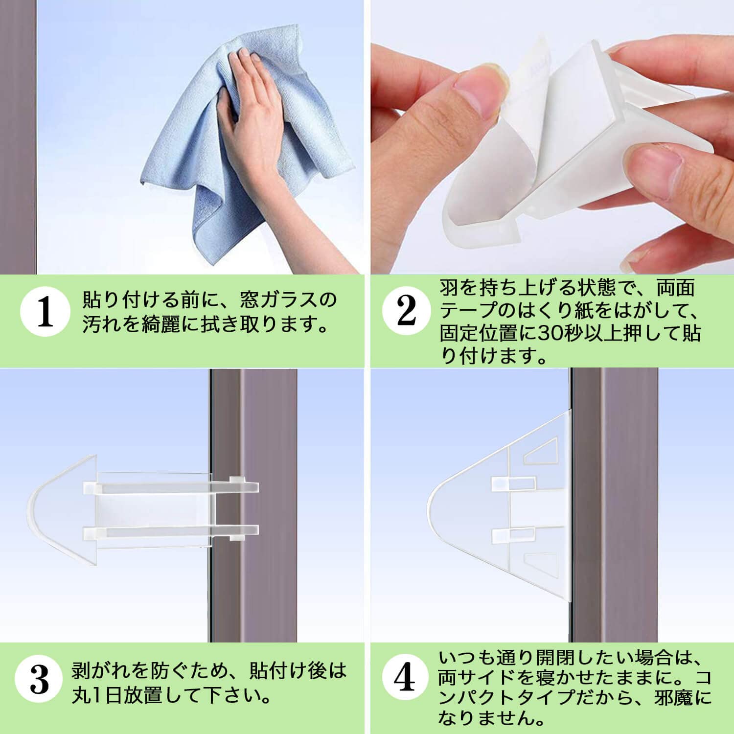『目が立たないクリアカラー』さまざまな場所へ貼り付けやすい透明な窓 引き戸ロックです。目が立たないクリアカラーを採用し、窓やスライドドアに設置しても違和感がありません。