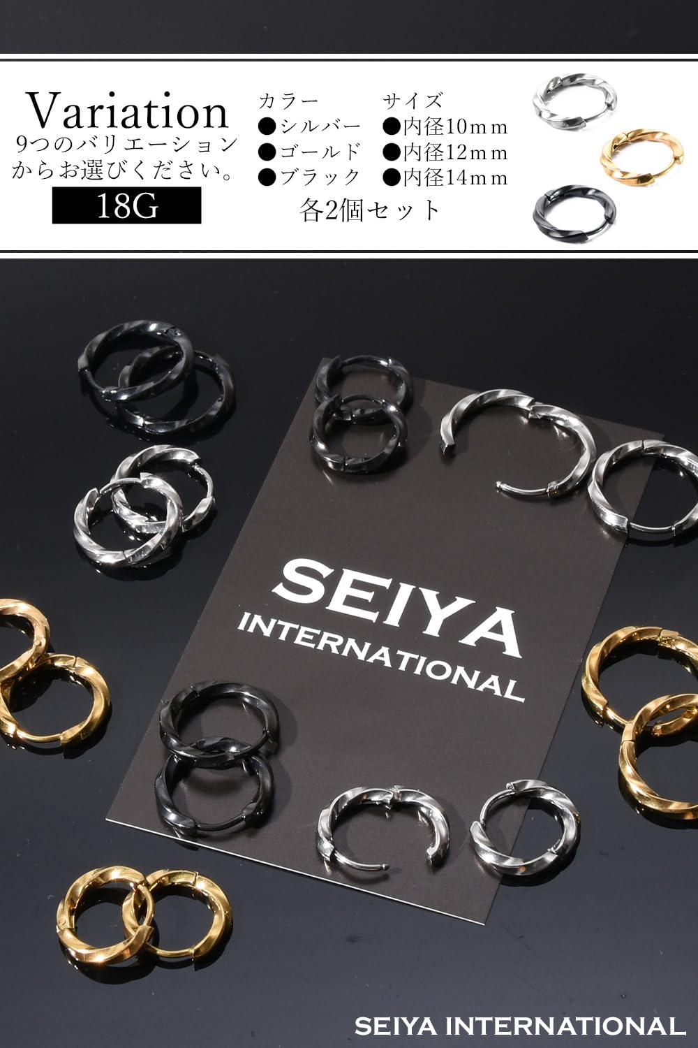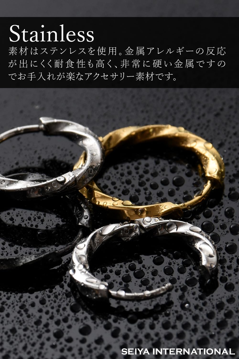 [SEIYA INTERNATIONAL] ピアス メンズ フープピアス リングピアス ツイスト ステンレス 18G 両耳 2個セット