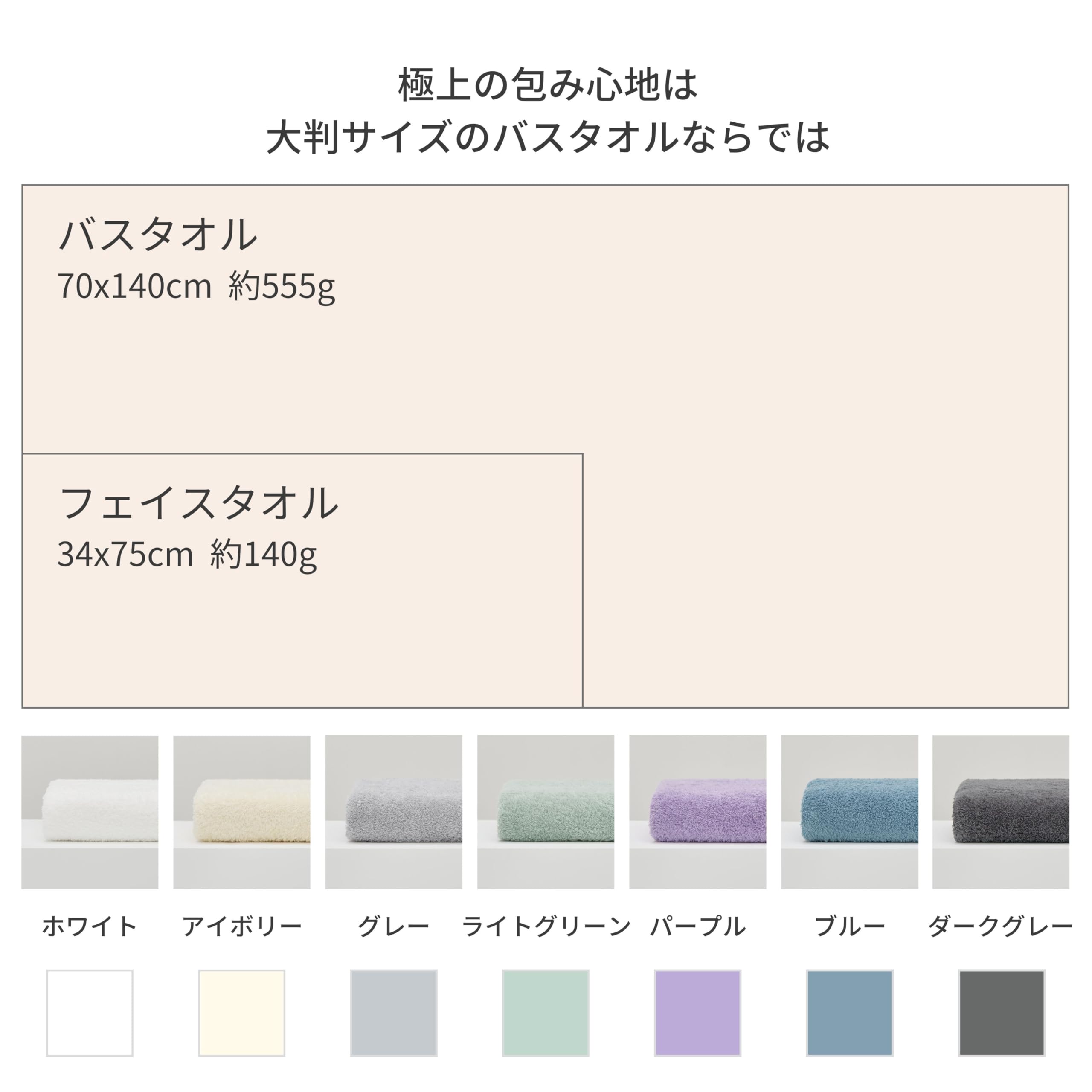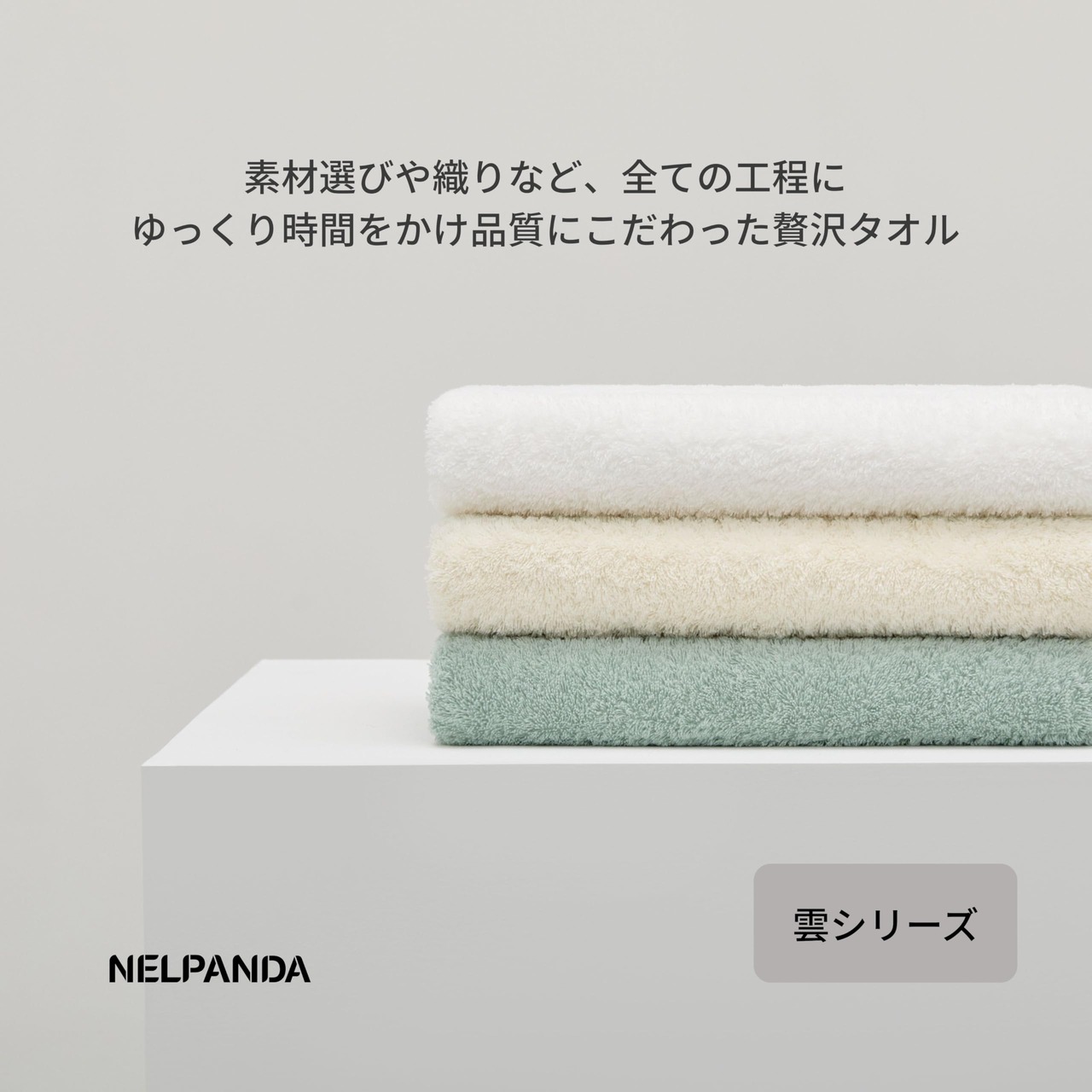 【贅沢クオリティが詰まった逸品】雲シリーズは素材選びや織りなど、全ての工程にゆっくり時間をかけ品質にこだわった高級タオル。これまでの霧シリーズをベースとしながら、その上をいくシリーズとして誕生しました。(素材:100%手摘エジプト綿GIZA86 / 大判バスタオル:約555g 約70x140cm / フェイスタオル:約140g 約34×75cm)