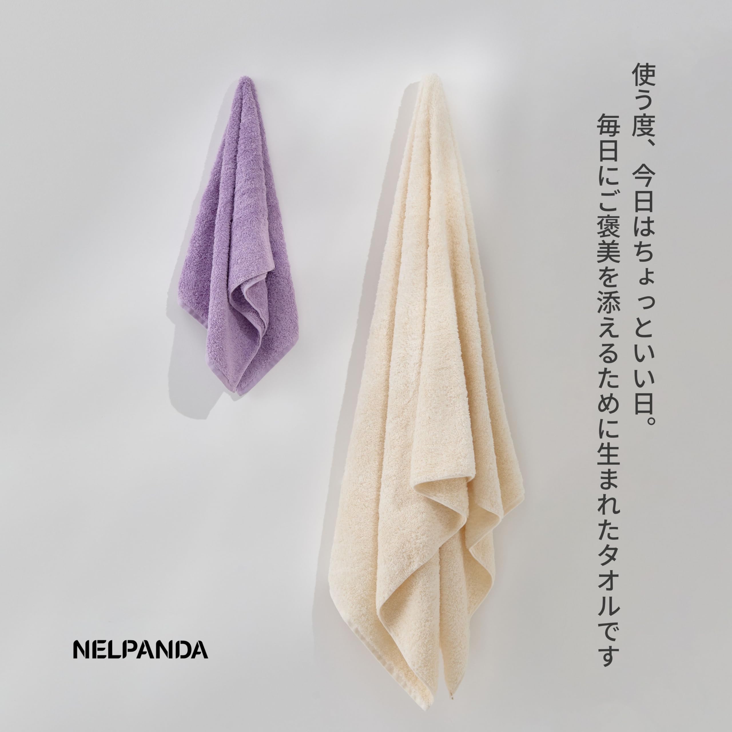 【快適さを追求】NELPANDA独自のデザインに、欧米と日本の技術を採用して製品化。でき得る限りの最高品質をお届けします。バスタオルは、優れた包み込み感を実現するためにした大判サイズを採用しています。