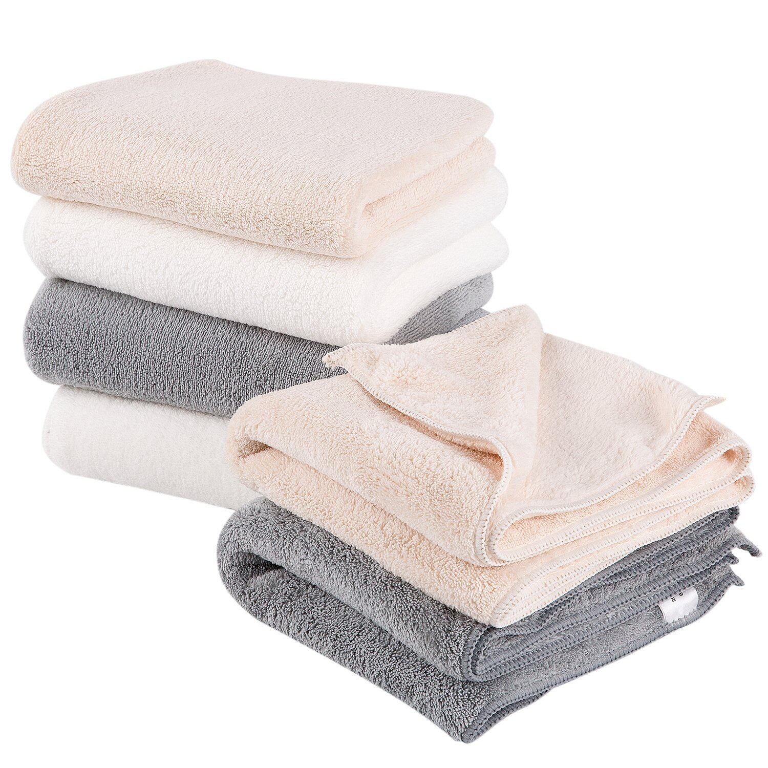 Oseamaid フェイスタオル 6 枚セット マイクロファイバー タオル 吸水速乾抗菌防臭(白 ベージュ グレー)