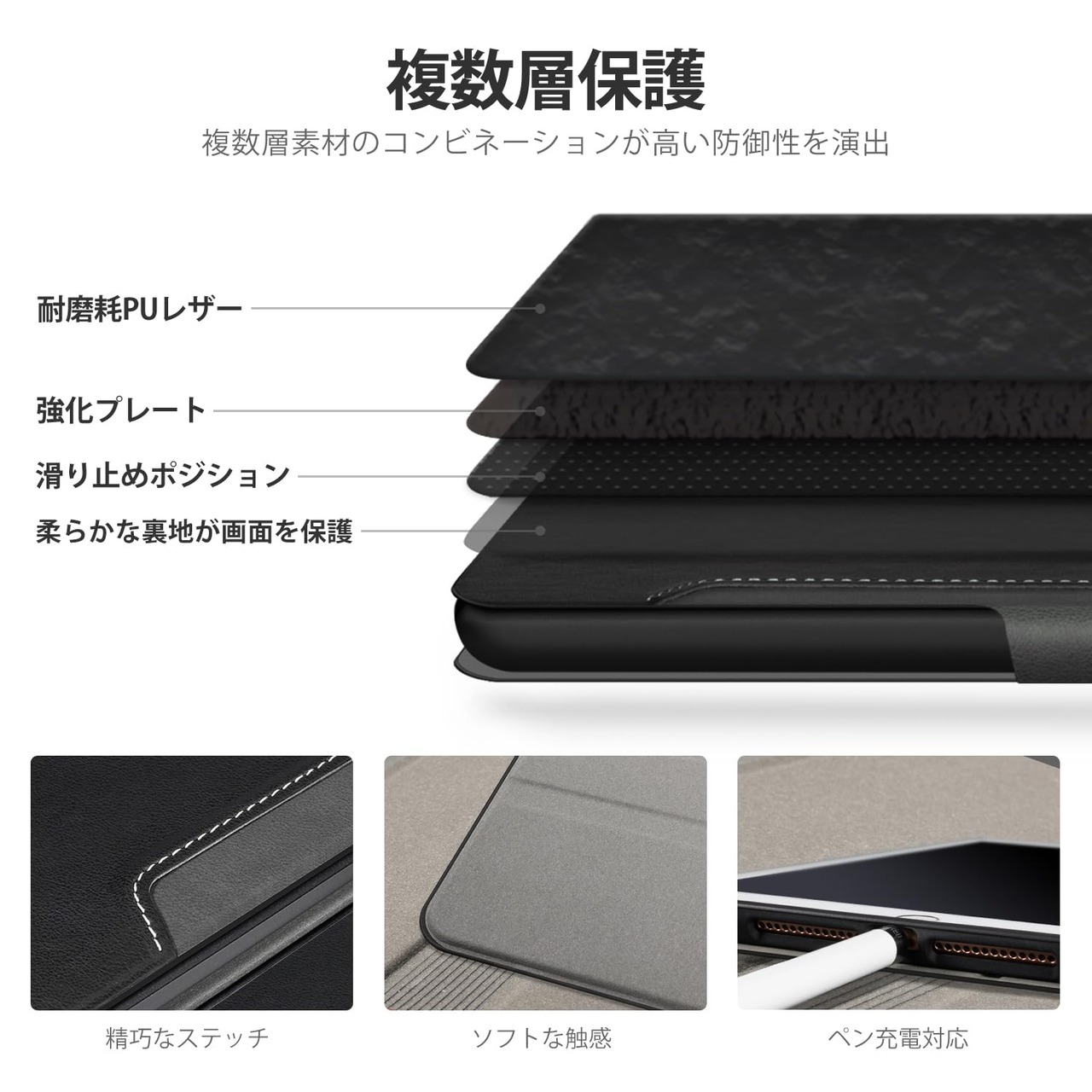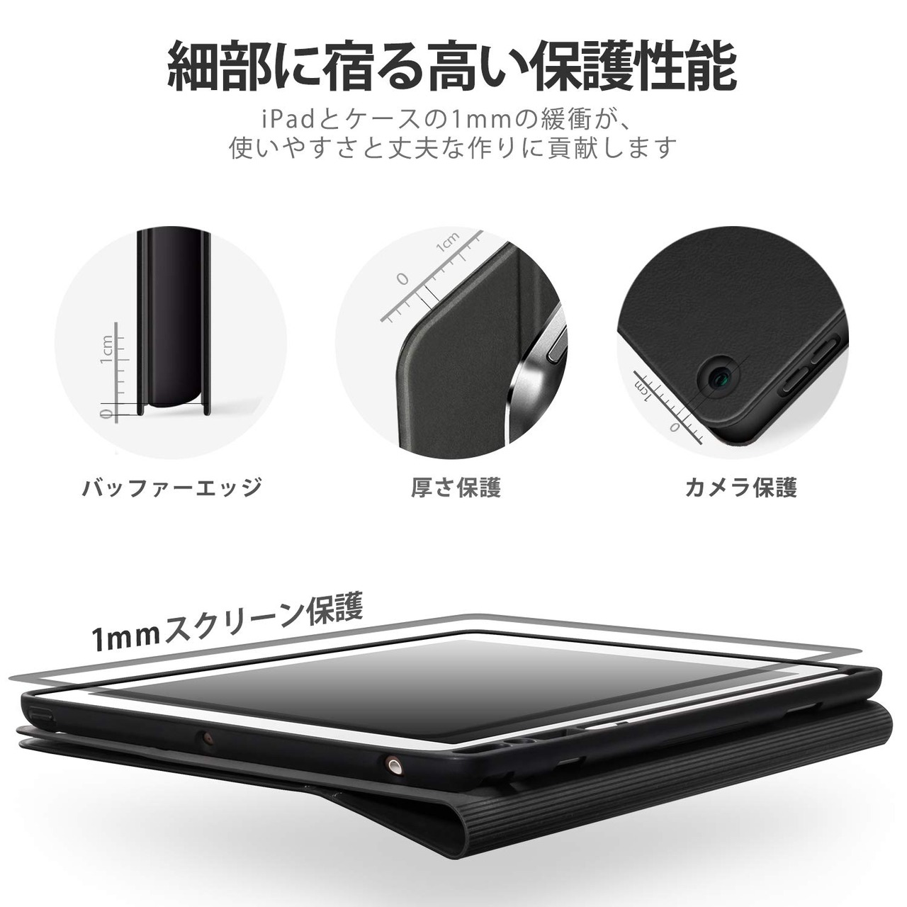 2、【全面保護】iPad本体を完全カバーし、ホコリや傷から守ります。改良されたバックシェルには強靭なTPU素材を使用しており、プラスチックシェルと異なり、何回脱着してもひび割れません。