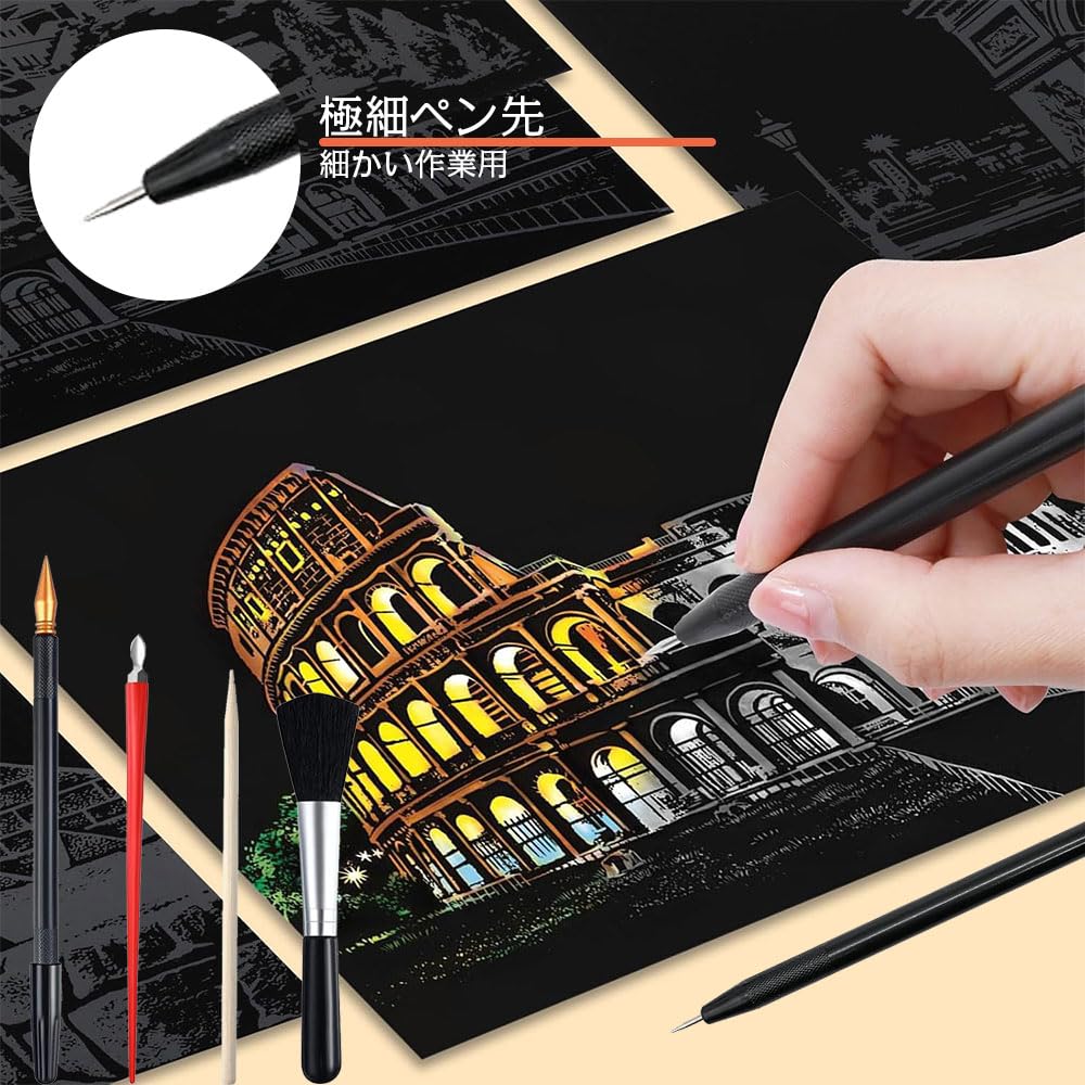 【新着】スクラッチペンセット スクラッチアート スクラッチアートペン 13本セット 入門 初心者 極細ペン 竹串ペン ブラシ スクラッチアート工具 絵画/興味/お子様/勉強 家庭/初心者 | GIGATERA