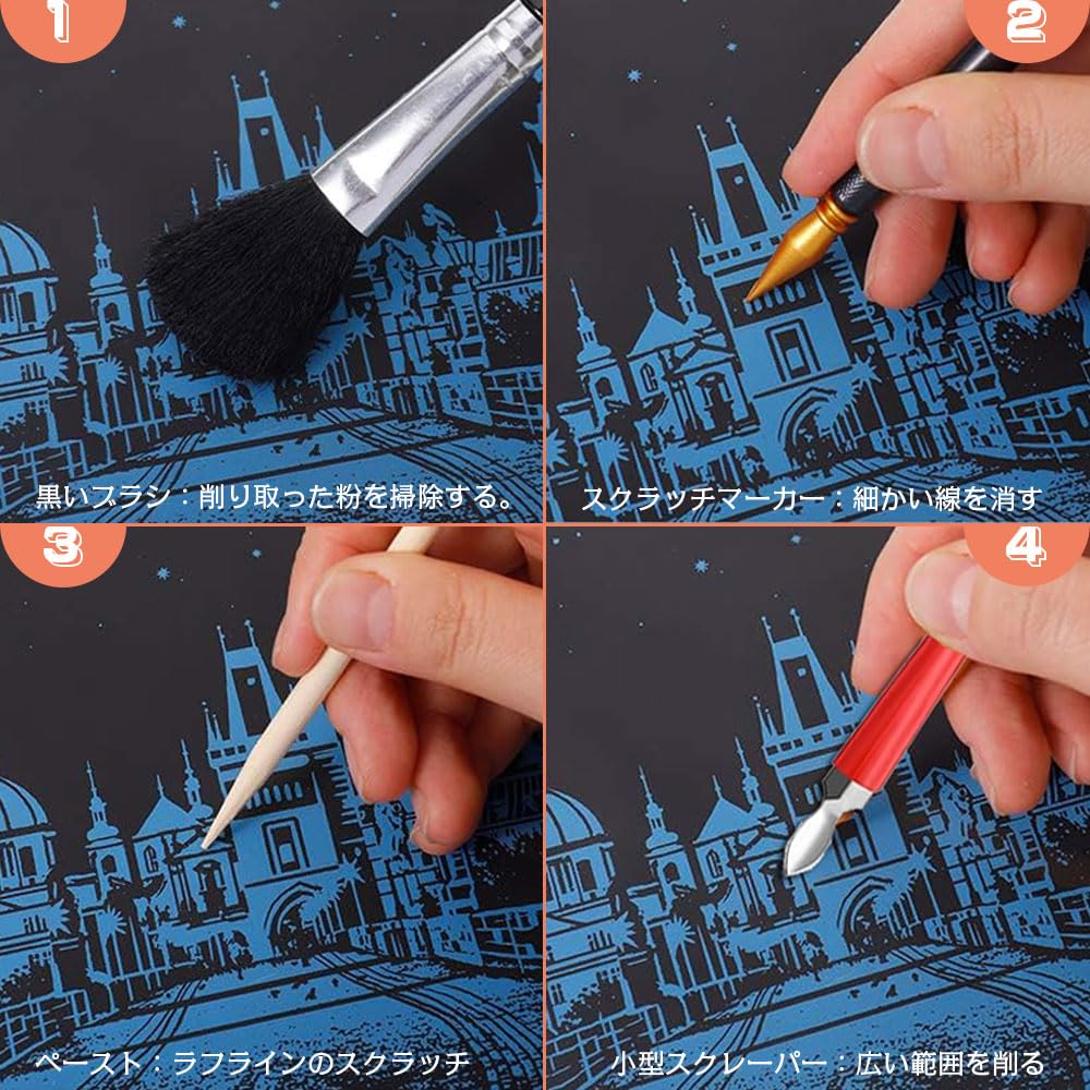 持ち運びが簡単:このスクラッチツールのプラスチックと木製のスクラッチブラシは薄くて軽いので、ブラシケースに簡単に収納でき、いつでも持ち運ぶことができます。 スケッチ、画材収集、創作のための長距離移動など、どのような状況でも負担になりません。