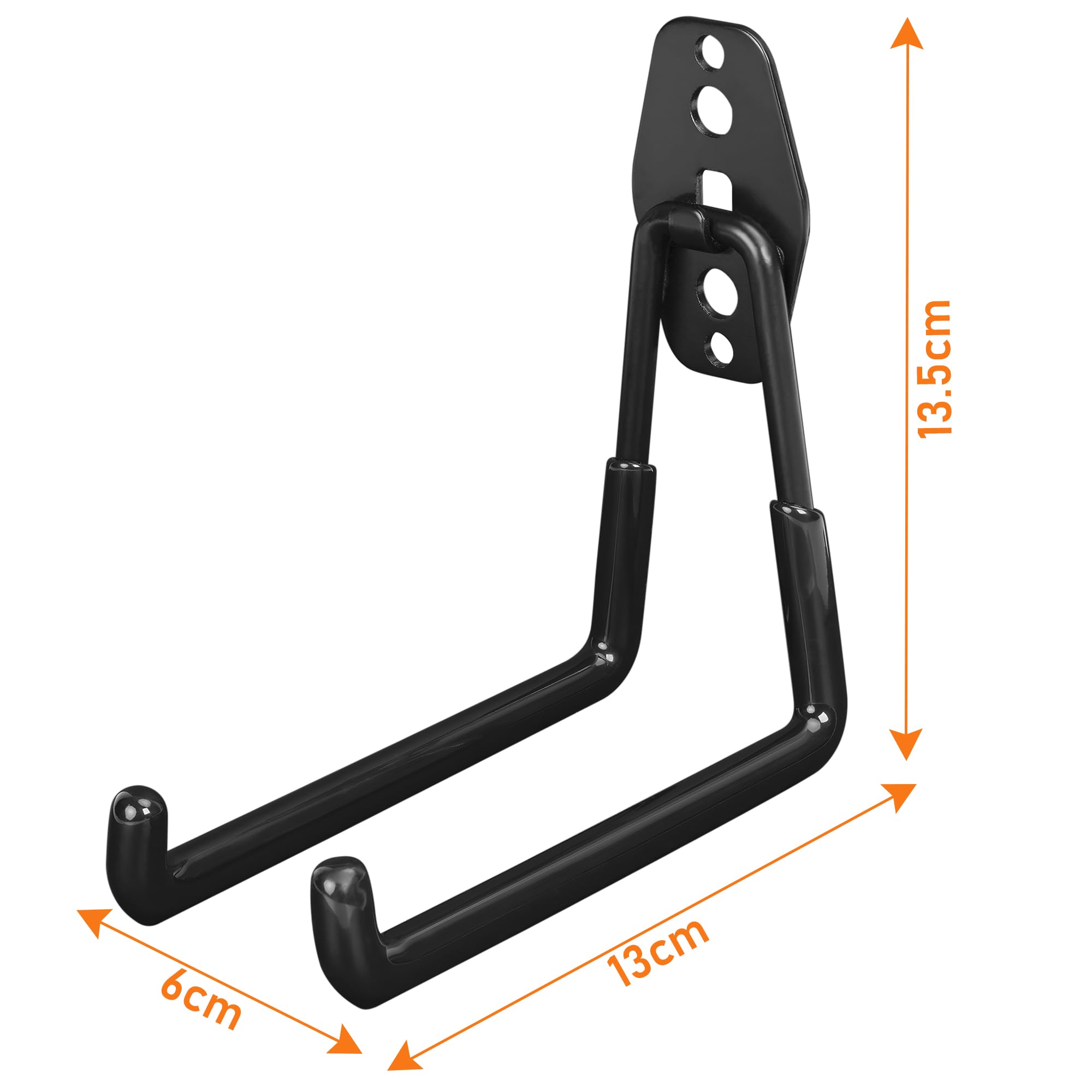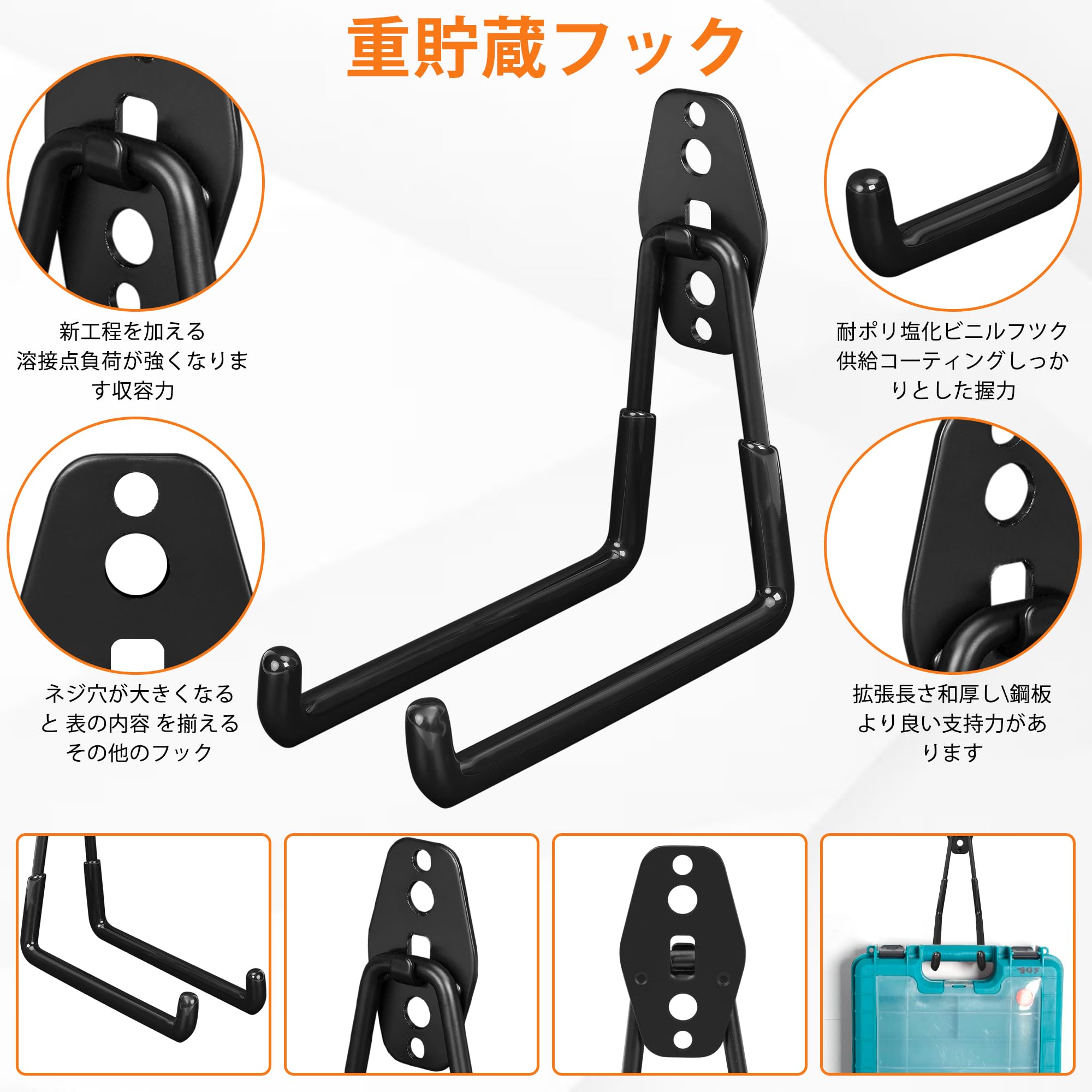 【強化された耐荷重設計】 3点溶接構造により、通常の2点溶接よりも高い耐荷重性を実現。重量物も安心して掛けられるため、ガレージや倉庫での収納に最適です。