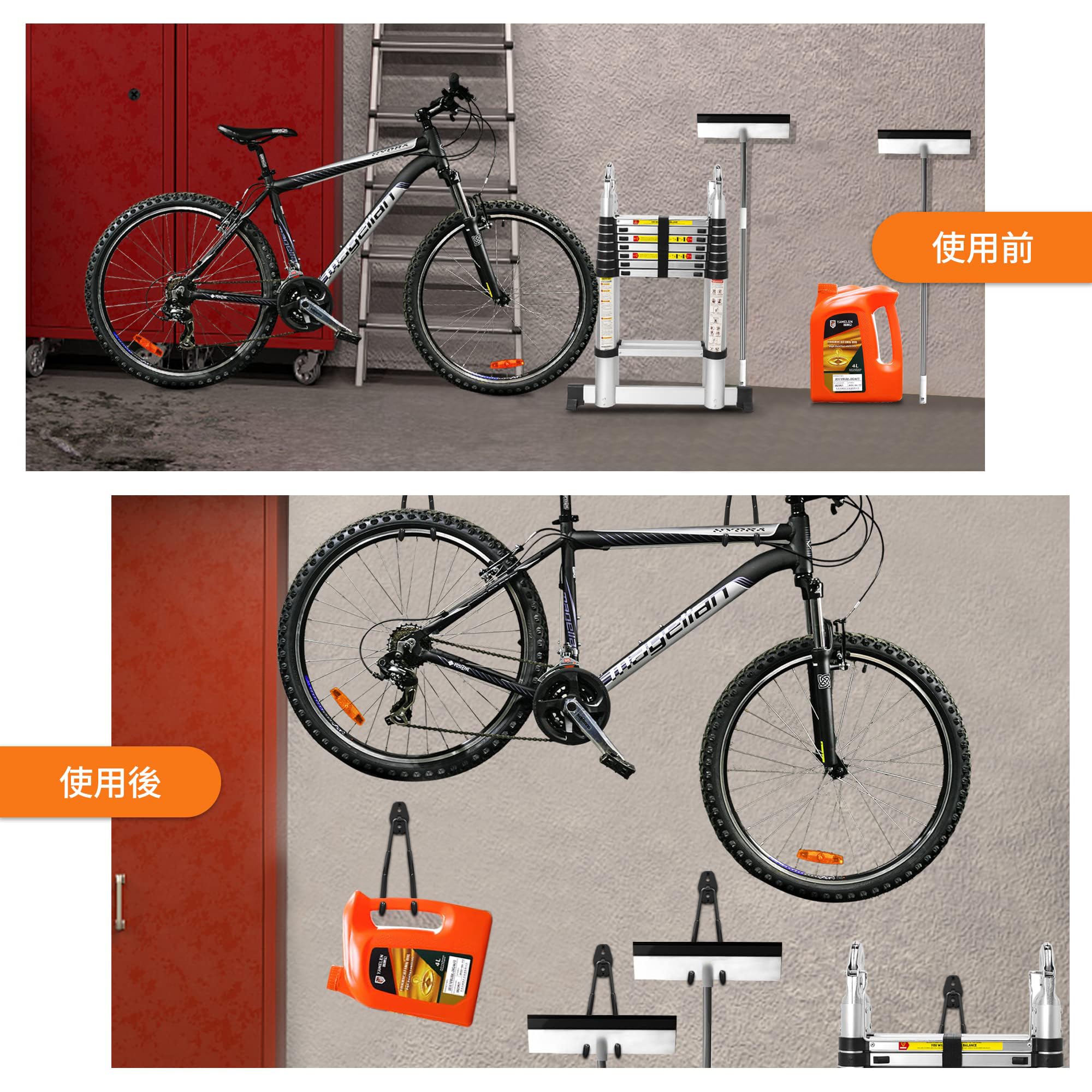 【幅広い用途に対応】 工具、自転車、折りたたみ椅子、家庭用品など多目的に活用可能。キッチンや洗濯室、寝室、屋外収納スペースにも便利に設置できます。