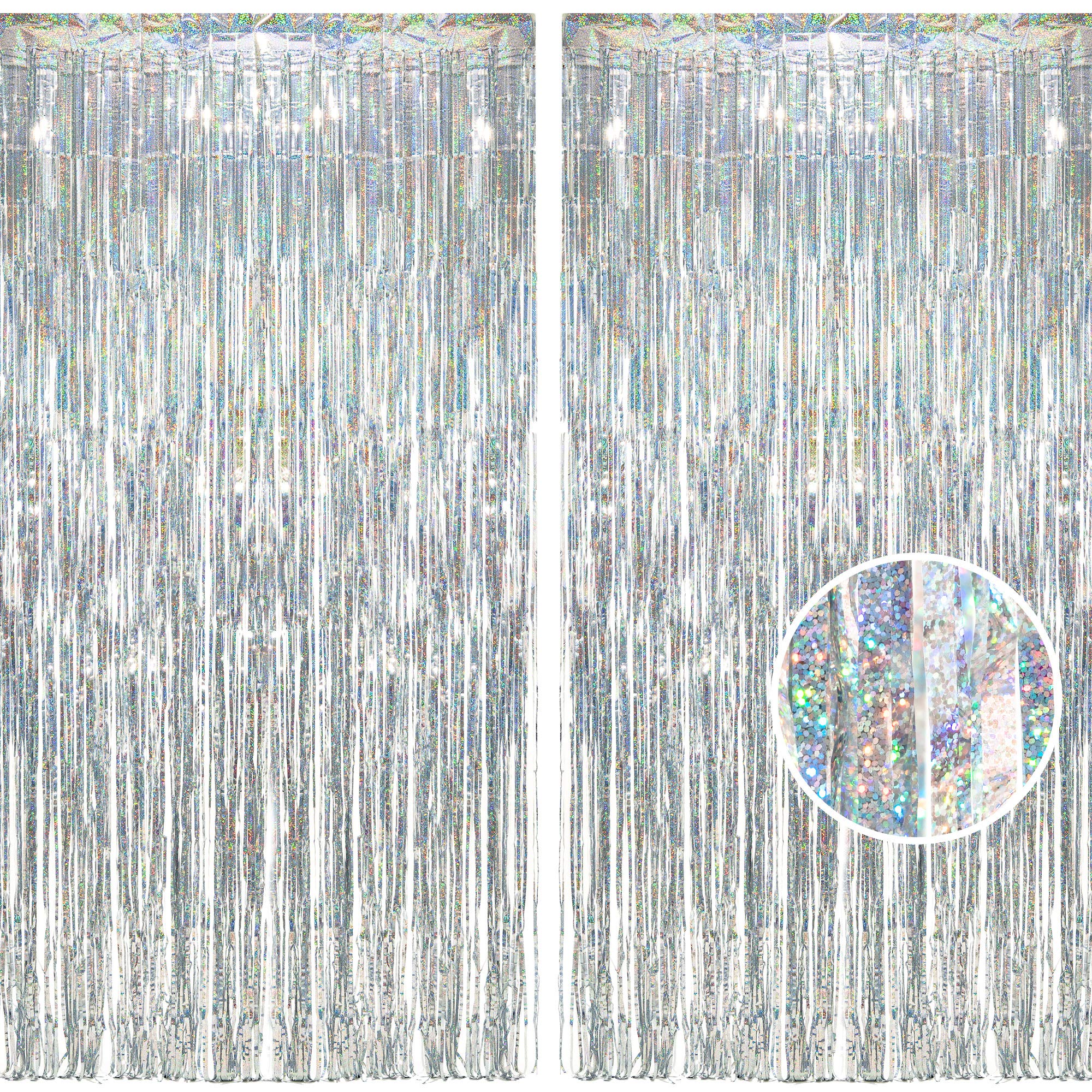 2個セット BRAVESHINE タッセルカーテン キラキラ 背景 明るい光沢 誕生日 クリスマス 飾り付け 100cm*250cm 誕生日 飾り カーテン birthday decorations パーティー デコレーション party decoration (銀色)