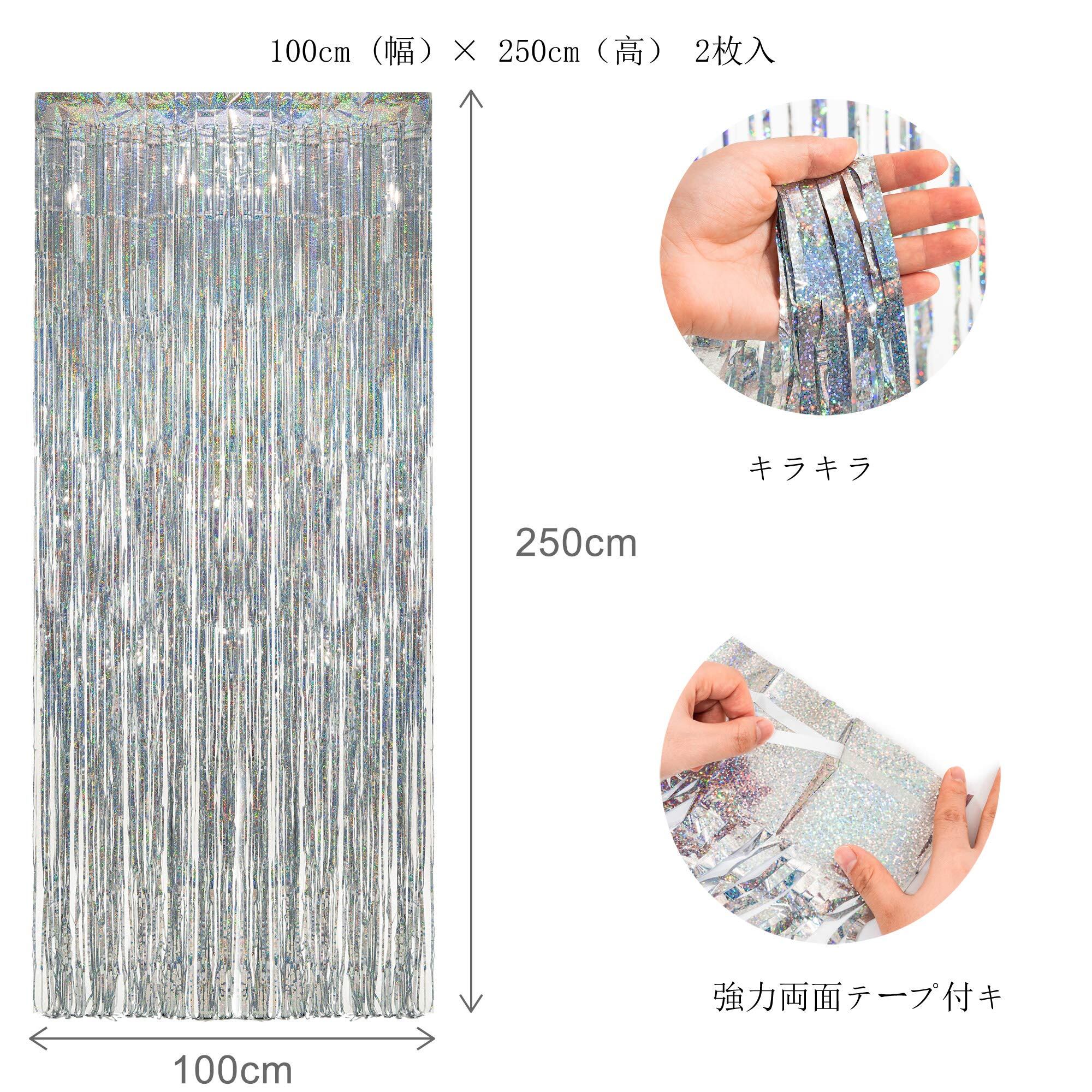 【新着】2個セット BRAVESHINE タッセルカーテン キラキラ 背景 明るい光沢 誕生日 クリスマス 飾り付け 100cm*250cm 誕生日 飾り カーテン birthday decorations パーティー デコレーション party decoration (銀色) | GIGATERA