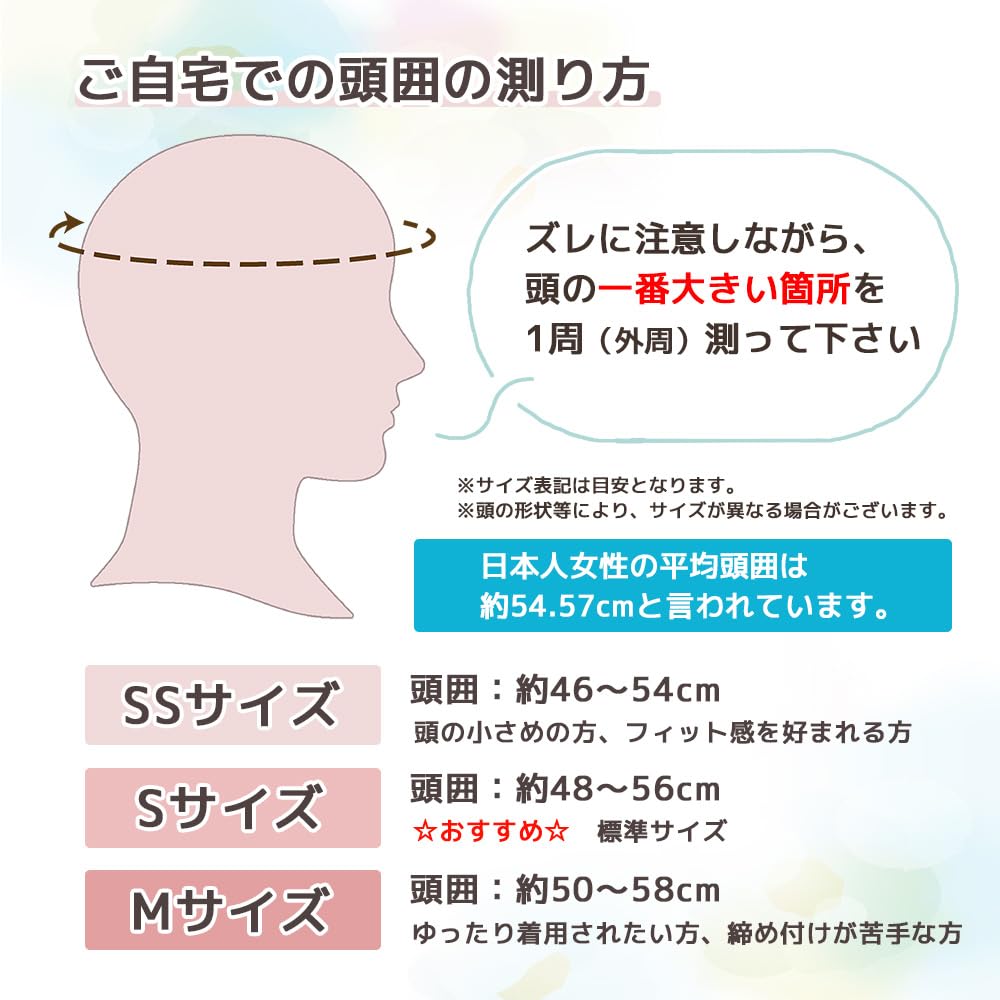【伸縮前のサイズ(約)】SS…頭囲46cm、S…頭囲48cm、M…頭囲50cm 【洗濯方法】お洗濯の際は必ず手洗いで優しく洗ってください。また、乾かす際は風通しの良い日陰で干してください。