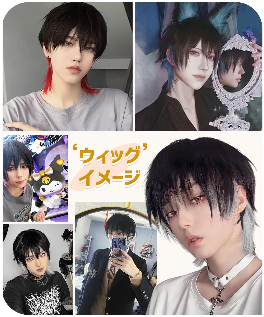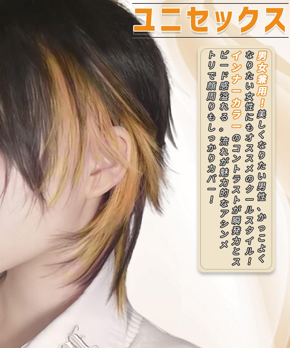 【人気】ORSUNCERウィッグ ウルフカット ショート 黒 金髪 インナーカラー ゴールド かつら フルウィッグ メンズ 男性 原宿 cosplay イケメン 自然 耐熱 人気 ファッション | GIGATERA