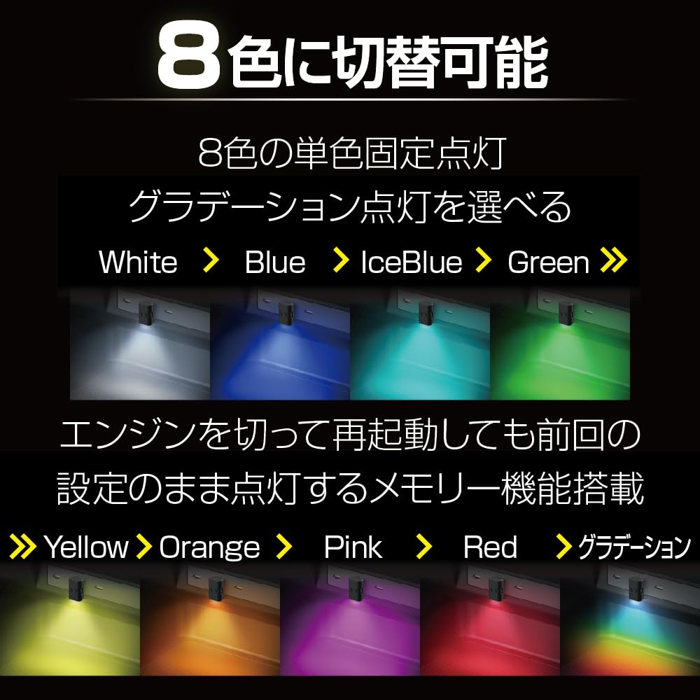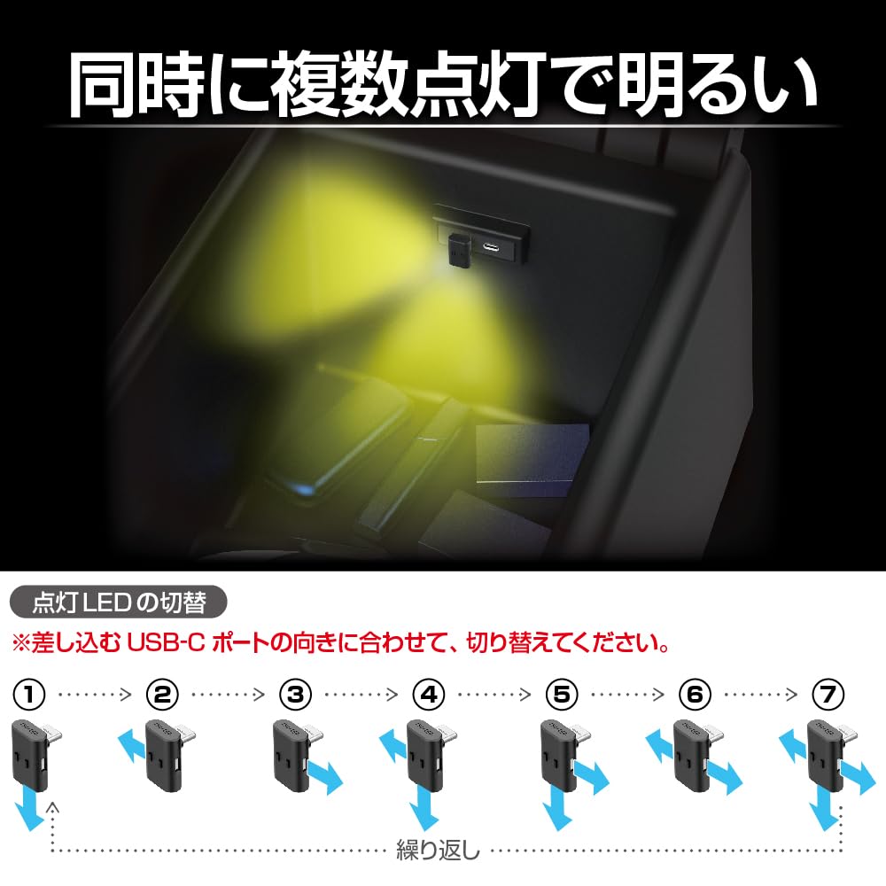 USB-C電源のL型ミニライト、3つのLEDを搭載。ON/OFFタッチセンサーで、好きな時に点灯・消灯が切替できる。8色の単色固定などの光り方が選択可能、スペーサーが付属。