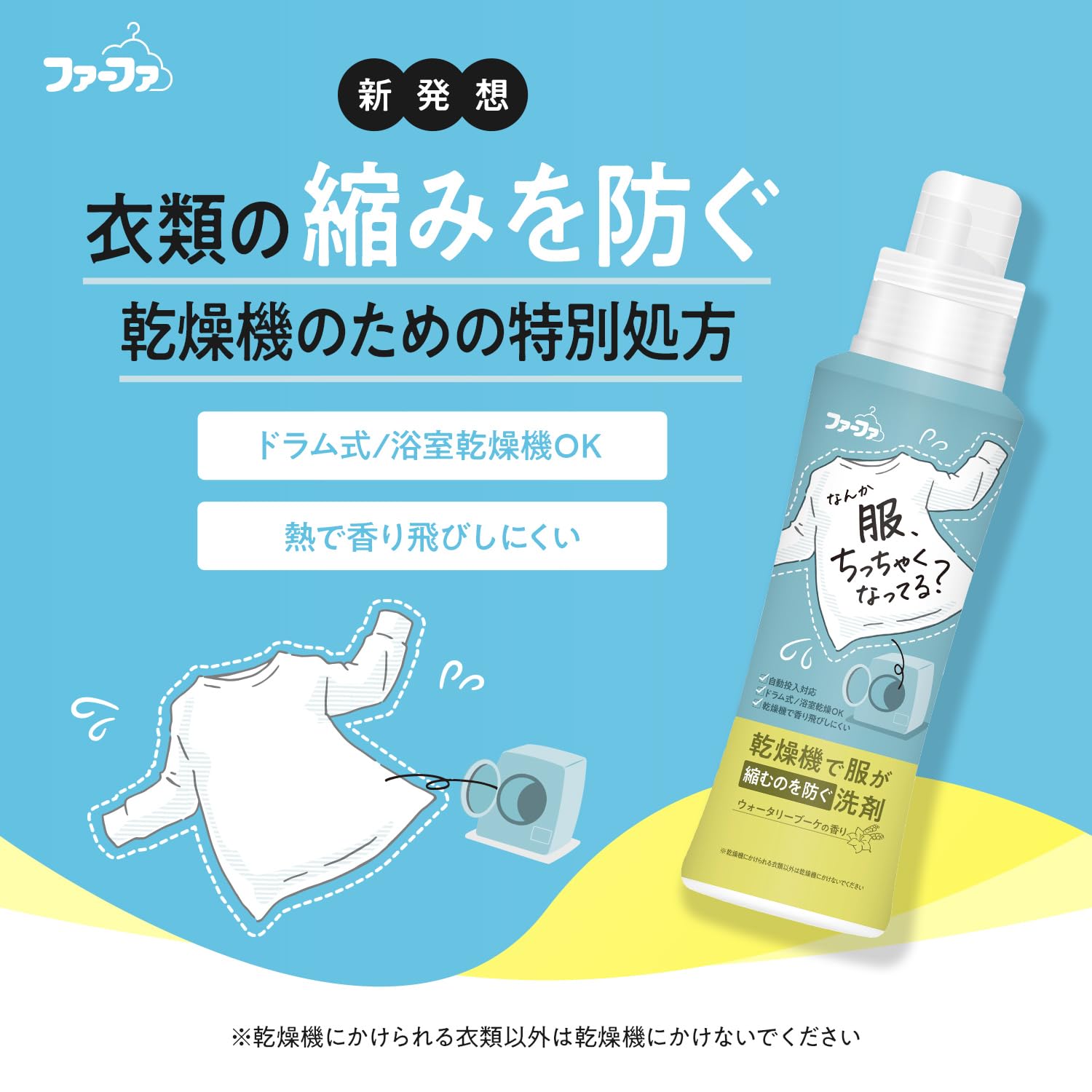 乾燥機で服が縮むのを防ぐ洗剤。清潔感のあるウォータリーブーケの香り。詰替大容量。