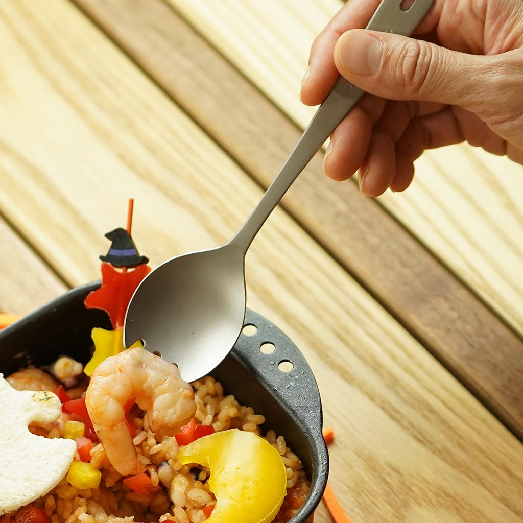 軽くて金属臭のしない、チタン製のフォークスプーン。