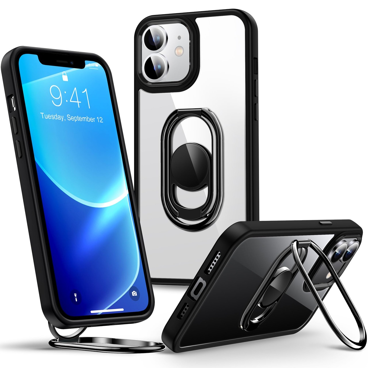 【セール】Rockaway iPhone 11 用 ケース スマホリング スマホグリップ 角度調節可能 折り畳み 耐衝撃 スタンド機能 軽量 落下防止 スマホケース アイフォン11 用カバー 6.1インチ - ブラック | GIGATERA