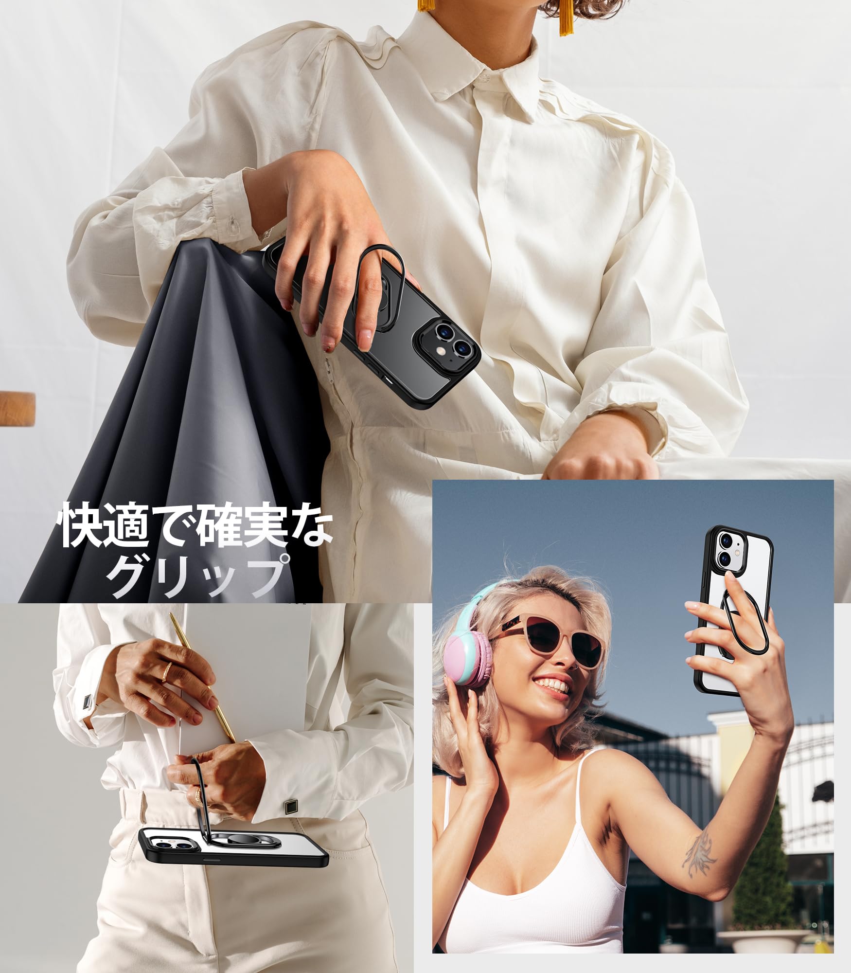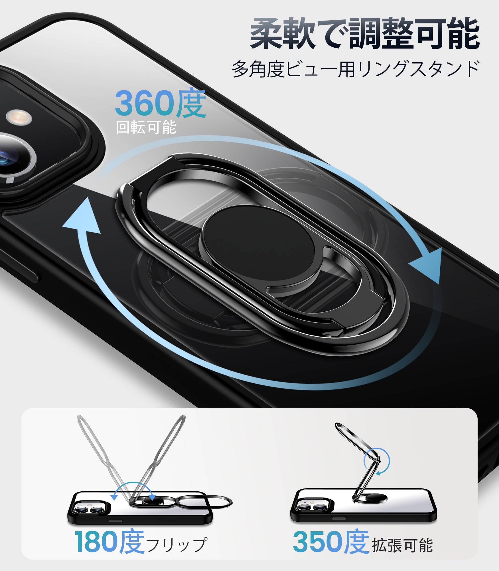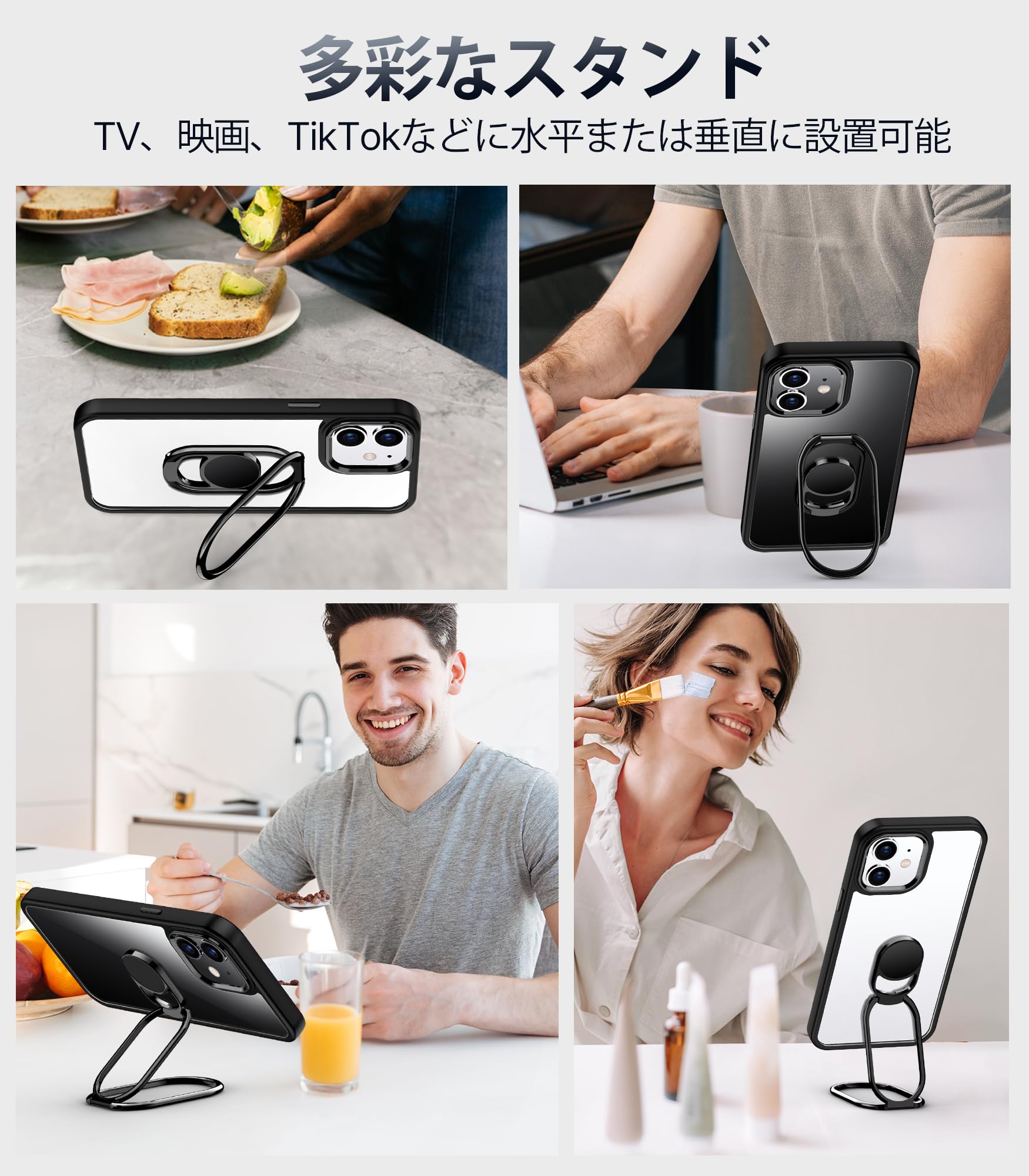 【自由に回転するリングスタンド】 このケースには、360°回転するベースと、それぞれ最大180°および350°まで調節可能な2つのアームが搭載されています。多彩なハンズフリー視聴オプションを提供します。