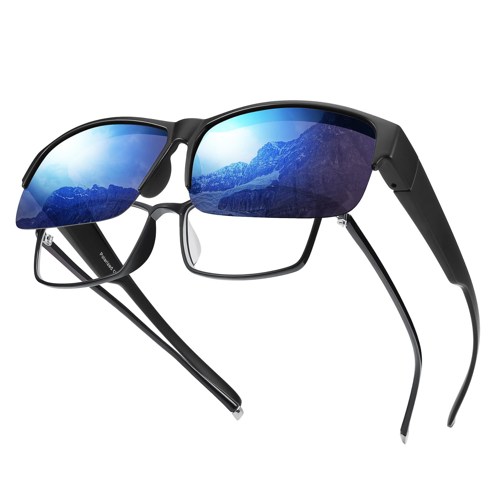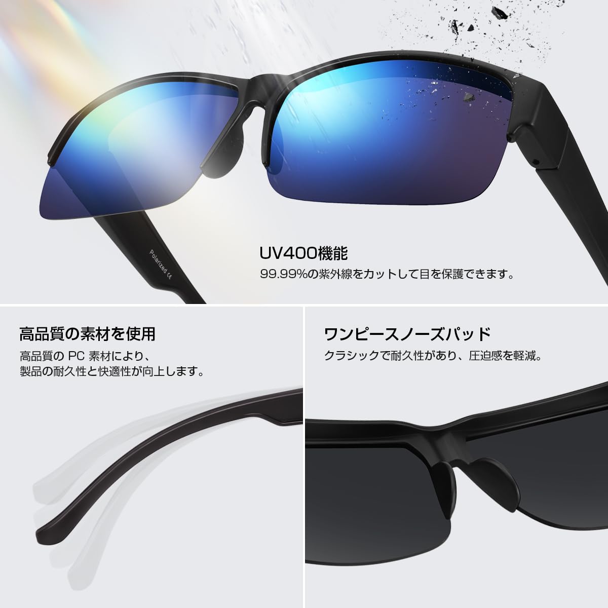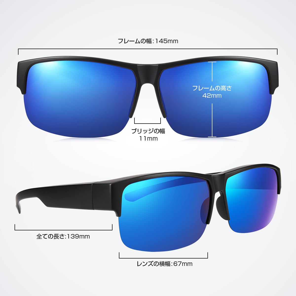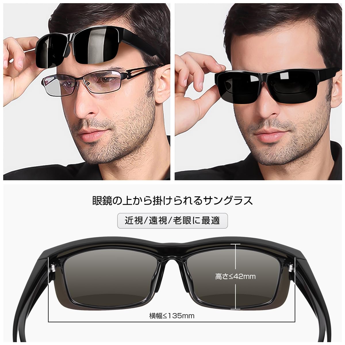 【偏光の性能】太陽の下で物から反射する眩光を有効的に防止できる偏光オーバーサングラスです。また、日中に光の強さが偏光レンズによって削減されるので、視界がよりクリアになります。