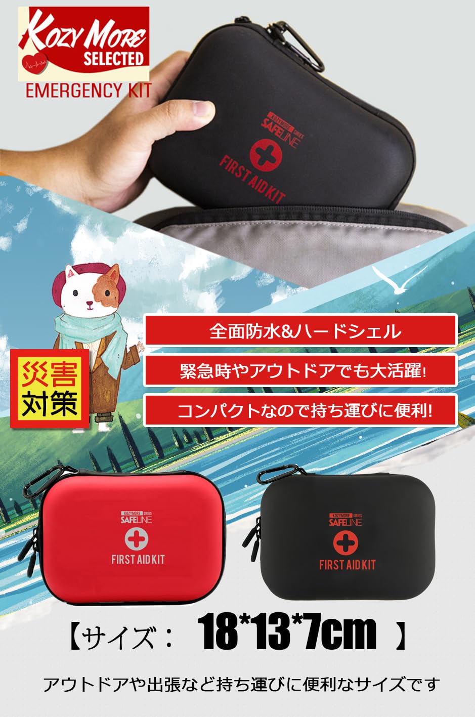 【多目的用途】これは、様々な生活シーンに柔軟に対応できる救急セットです。カナビラと視認性の高い赤十字のロゴを備え、登山・キャンプ・車載・アウトドアスポーツ時の携帯にとても便利です。その他、オフィスの引き出し・子供の学校・旅行用バックパックに入れても場所を取りません。もちろん、地震・自然災害への防災グッズとしてもおすすめです。
