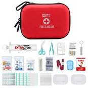 救急セット 防水 携帯用 救急箱 ファーストエイド キット 21種類 アウトドア 登山 車 防災グッズ ポイズンリムーバー 応急手当付 ケースタイプ Red