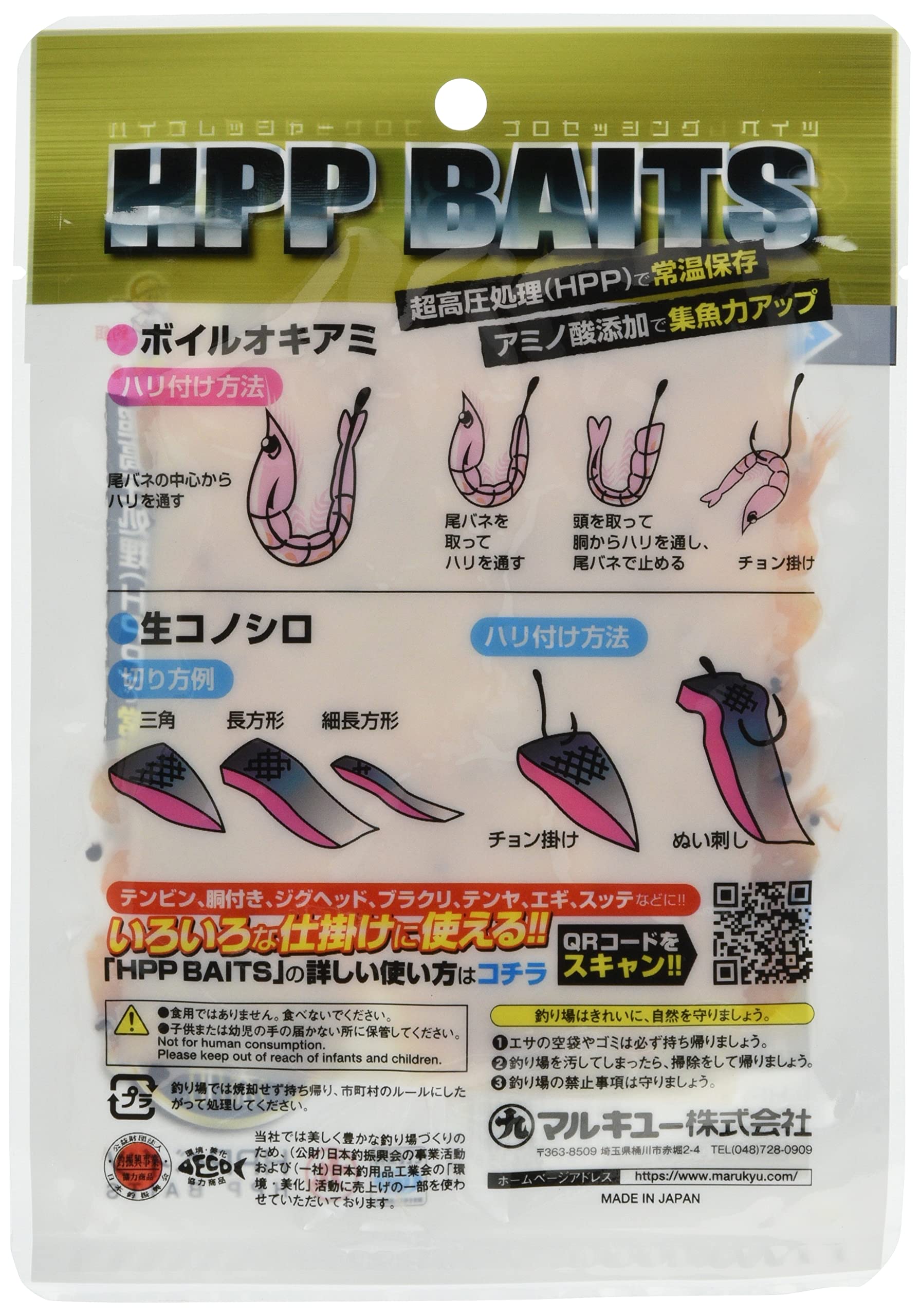 ■商品説明 ●生やボイルした素材に超高圧処理(HPP)を施し、フレッシュな状態で常温保存を可能にした、革命的くわせエサです。 さらに、“ うまみの元であるアミノ酸を添加。鮮度と集魚力の相乗効果で、ターゲットの食い込みの良さが、格段にアップします。 生コノシロは鮮度抜群の半身2 枚入り。お好みのサイズにカットして使えば、幅広いターゲットに使用できます。 ボイルオキアミはボイルならではのエサ持ちのよさで、しっかりとした食い込みが期待できます。 テンビン、胴付き、ジグヘッド、ブラクリ。さらに、テンヤ、エギ、スッテなど、手軽な釣りから本格的な釣りまで、ジャンルを問わずオールラウンドにお使いいただけます。 ※開封後は鮮度を保つため、冷蔵保管をおすすめします。