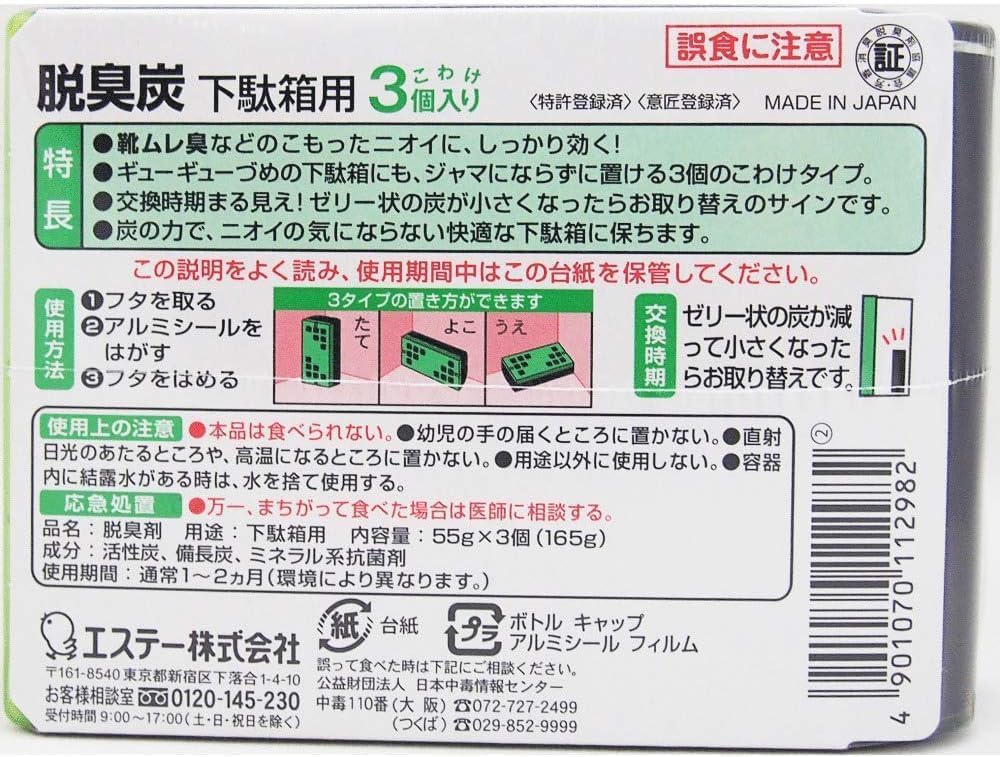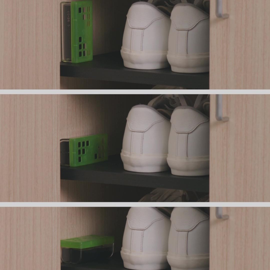 【靴ムレ臭などこもったニオイに効く】ギューギューづめの下駄箱にも、ジャマにならずに置ける3個のこわけです。