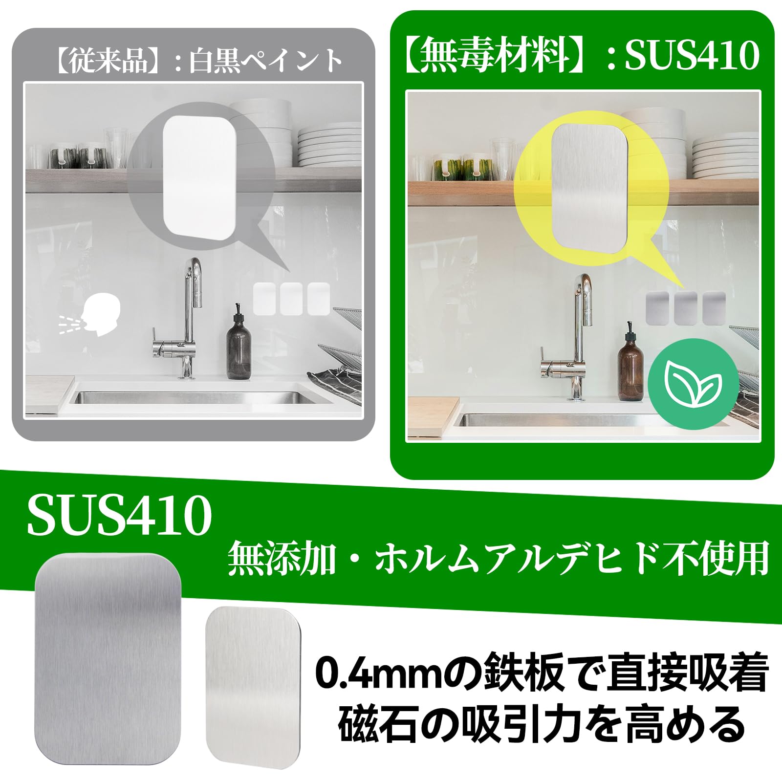 【表面】このスチールシート補助板はステンレス(SUS430)製、なめらかで心地よい手触り。また、耐腐食性、耐久性にも優れています。マグネット 補助プレート 自体は磁力はありませんのでご了承お願いします。