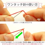 上から下に差し込むだけで簡単に糸が通ります。 (糸を針に通す際、針穴が小さく糸を針穴に入れるのが難しい、イライラするというお客様の声から生まれた商品です。)