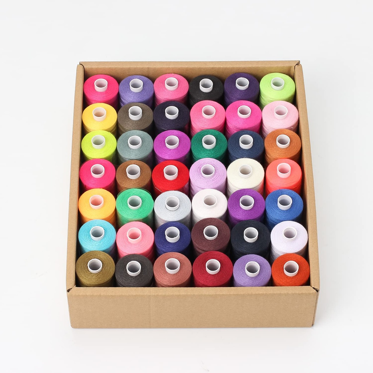 Windman ミシン糸セット 60番 42色 1000ヤード/巻 キングスパン スパン糸 普通地用 ミシン糸 ポリエステル 手縫い対応 裁縫用糸 セット