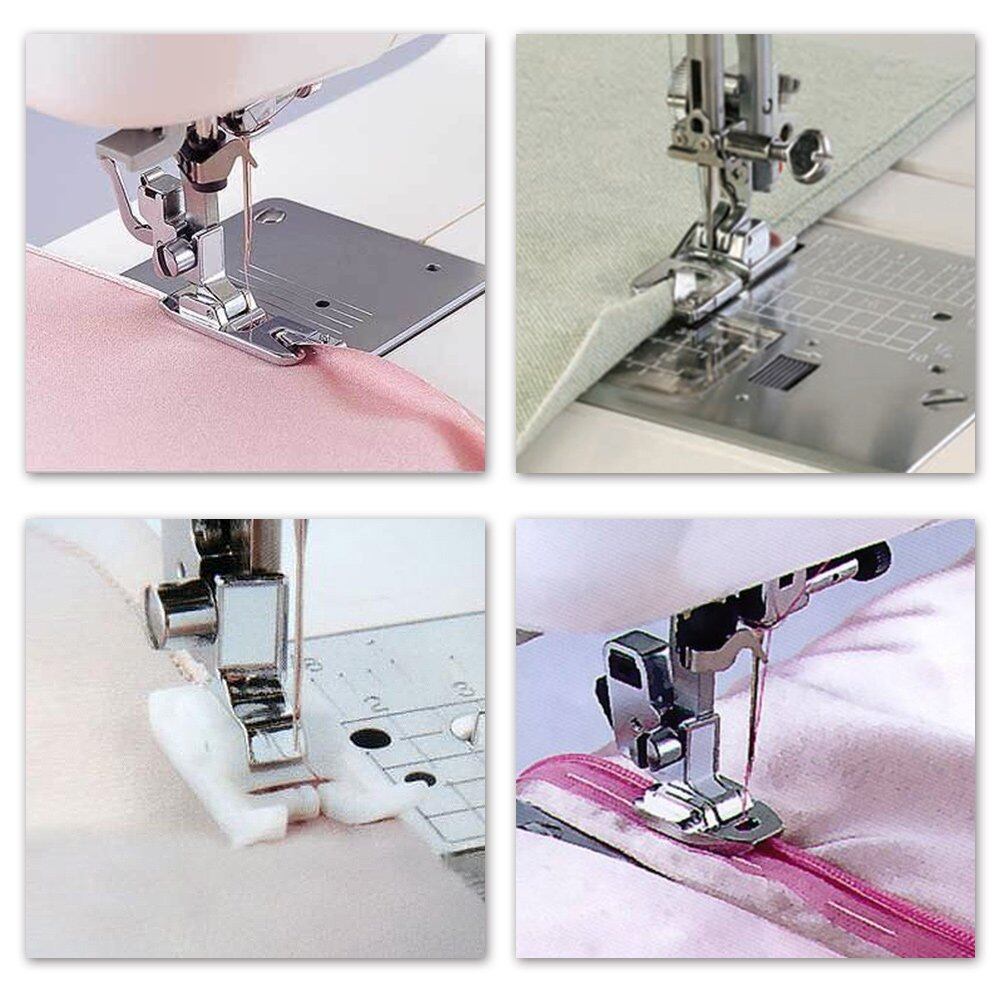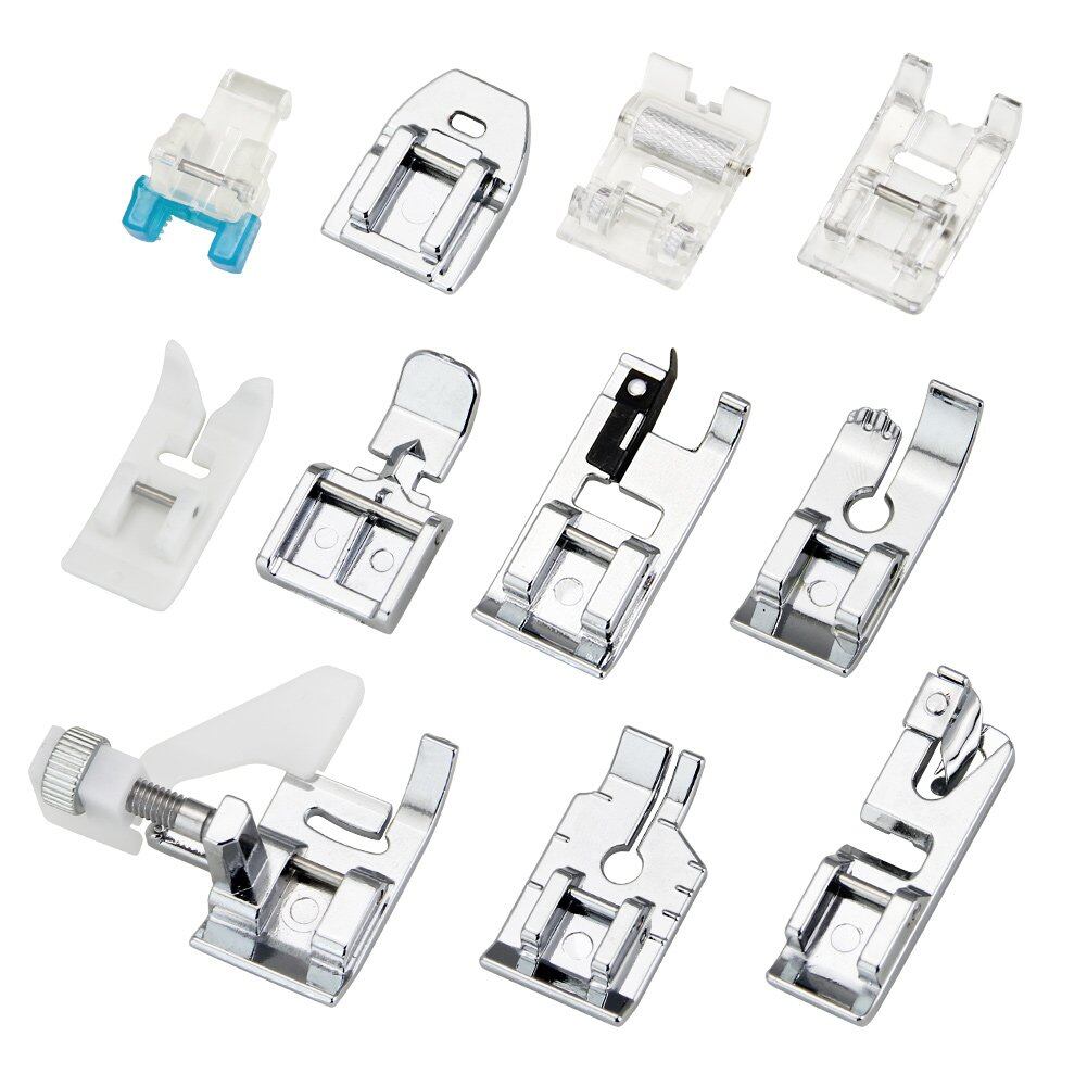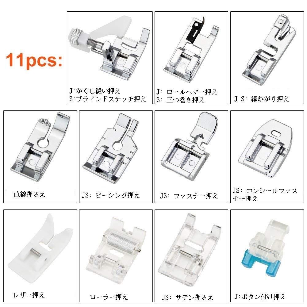 【押え足11個セット】:ブラインドステッチフット、裾の足、ジグザグ足、ストレートステッチフット、1/4キルティングフット、ジッパー足、インビジブルジッパーフット、革の足、ローラーフット、刺繍の足、ボタンミシン足11種類の押え金がセットに入っています。あなたの異なった使用法および取り替えの必要性を満たす十分。