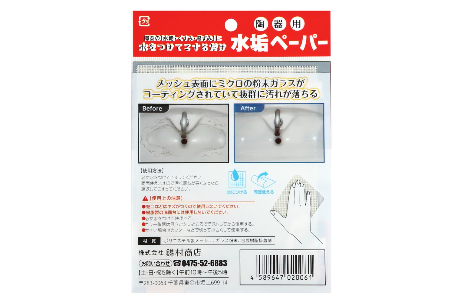 【「お掃除の錫村商店」の人気商品『水垢ペーパー』】