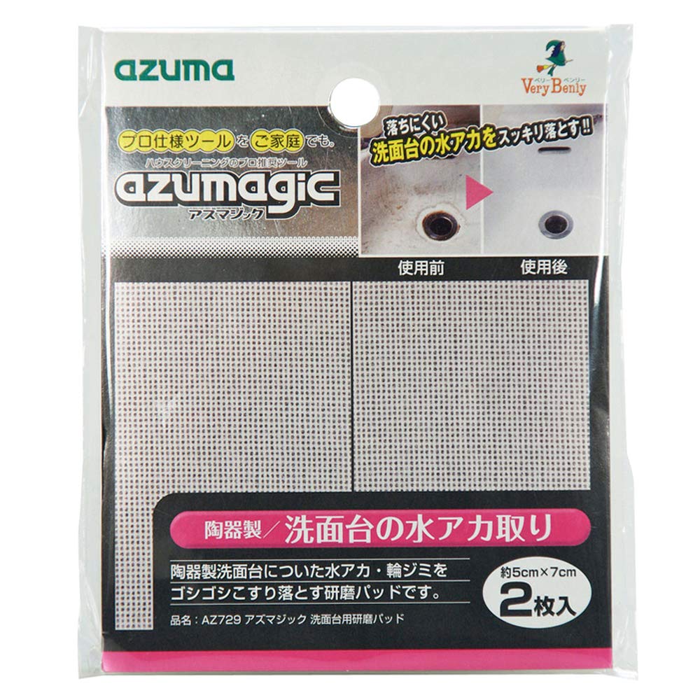 アズマ工業 アズマジック洗面台用研磨パッド 2枚入 洗面台の水アカ・輪ジミ汚れをスッキリ落とす プロ推奨の陶器製洗面台用研磨材 洗剤いらず水で濡らしてこするだけ AZ729