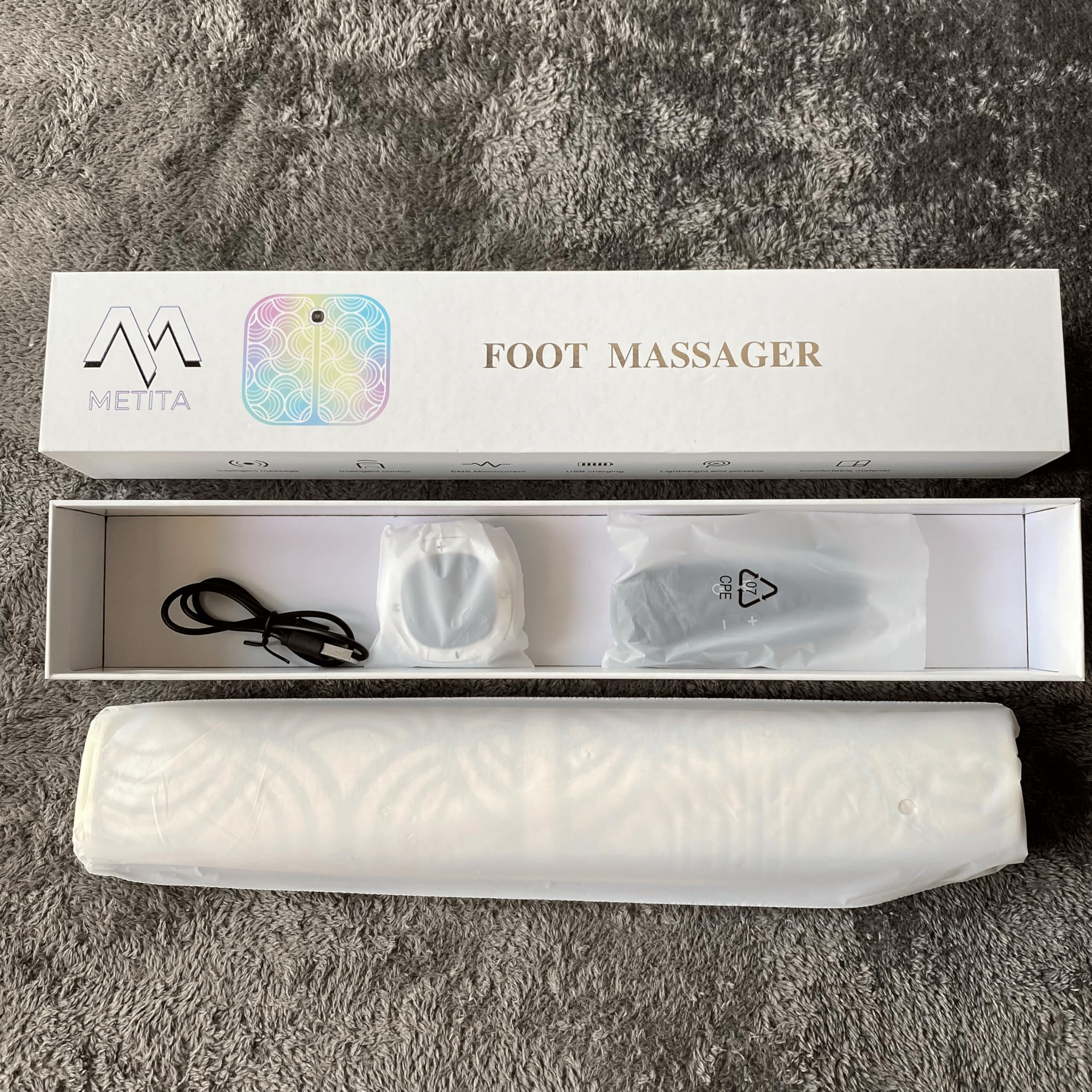 【携帯便利&一年間の品質】 約300gの軽量でコンパクトなデザイン。薄いパッドだから、くるくる巻いて簡単に持ち運び可能。無音作動でオフィスでも気軽に使用できます??。20分オートタイマー付きで、使い過ぎや切り忘れも安心。拭き取りでいつでも清潔に保てます?。USB充電式を採用し、場所を取らず、どこでも足をリラックスさせることができます??。大容量バッテリー内蔵で、最大220分の長時間使用が可能。