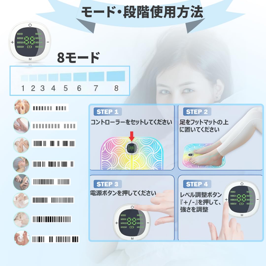 EMSフットマットems器足裏足 フット足裏フットマット遠隔操作リモコン付き。極薄・軽量設計で、男女兼用。静音設計なので、。日本語取扱説明書付き。