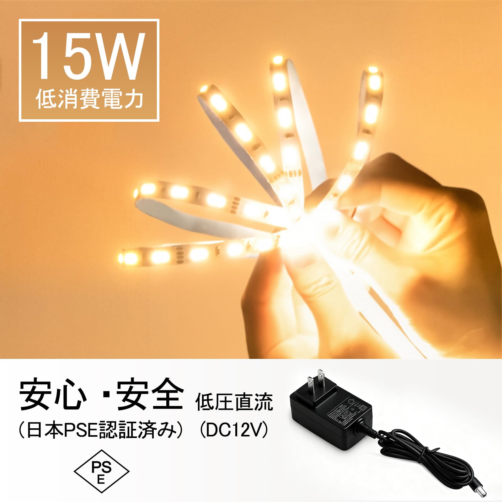 ??【長寿命・低消費電力・省エネ・間接照明】テープライト1メートルにLED素子120枚配置され、充分の明いかつ省エネ機能抜群!?5メートル当たり15W、1日8時間点灯で電気料金が3円となります。一般照明より省エネ、節電効果が良いです。??またこのLEDテープライトは、わずか15Wの消費電力で、白熱電球の4分の1の電力しか使用しません。使用寿命は1.5万時間以上で、省エネで経済的、かつ環境に優しい製品です。