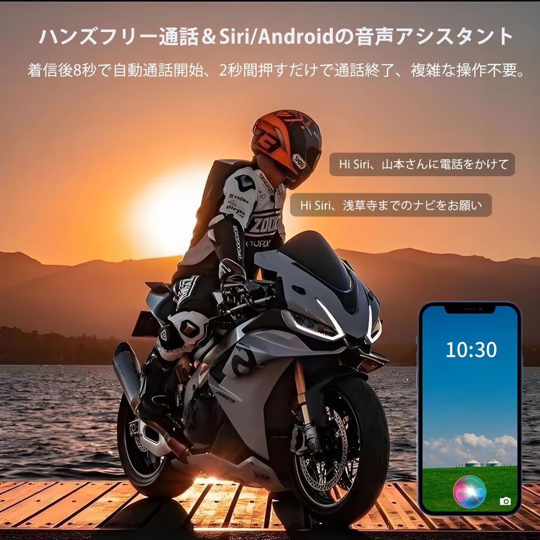 ?【Bluetooth 5.1&ハンズフリー通話】Bluetooth 5.1を搭載し、スマートフォン、音楽プレイヤーやGPSなどBluetoothデバイスとと接続できます。他ブランドのインカムとも接続可能。走行中の着信も5秒後に自動的に通話開始、ダブルタッチで通話を終了できるので、複雑な操作は不要。安全運転をサポートします。