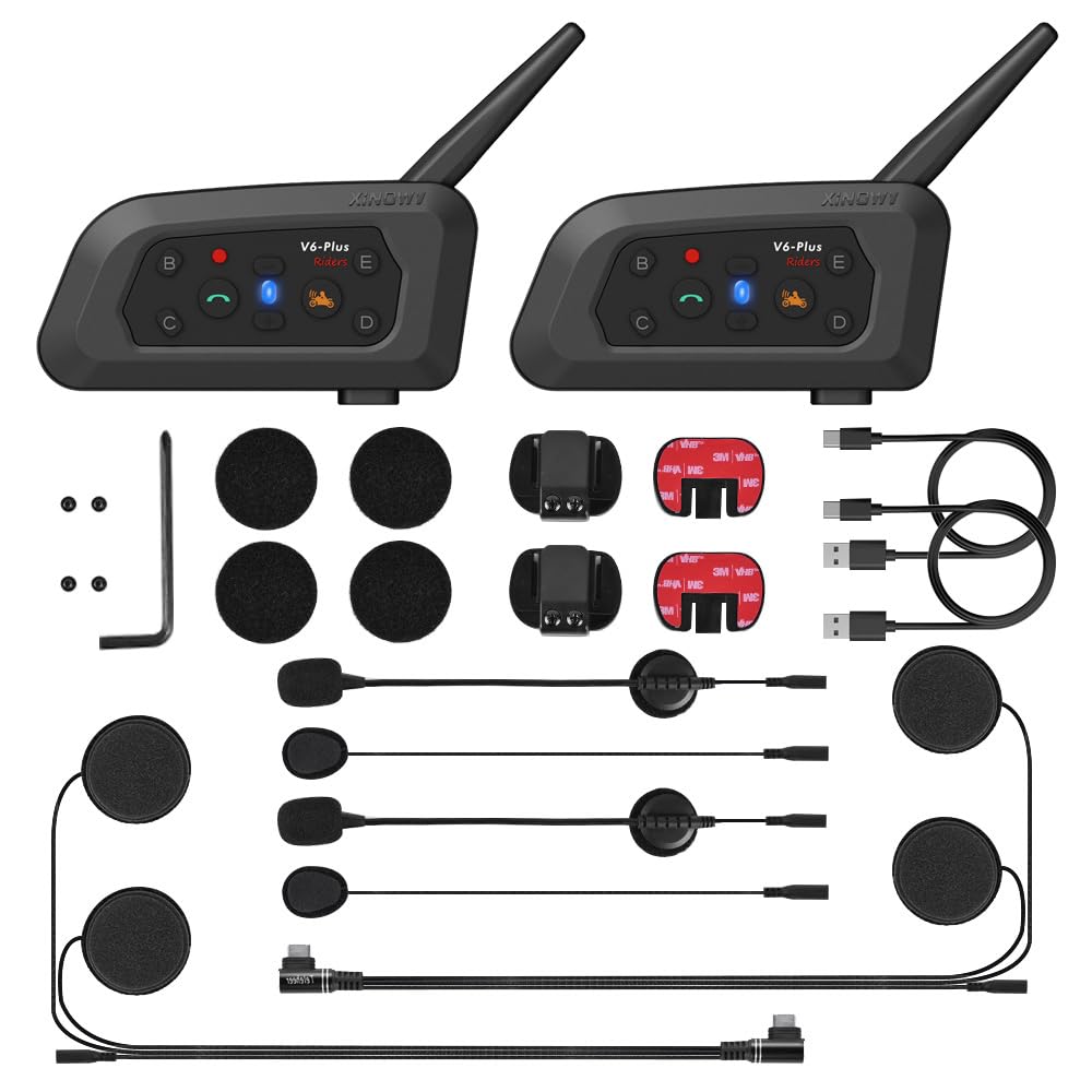 バイク用 インカム 最大6人連接 2人同時通話 V6 Plus アップグレード インターコム トランシーバー Bluetooth5.1 バイク無線機インカム 12時間連続通話 音楽聴き IP65防水 最大通話距離1500M ヘルメット用 ヘッドセット 日本語説明書付き (2パック)