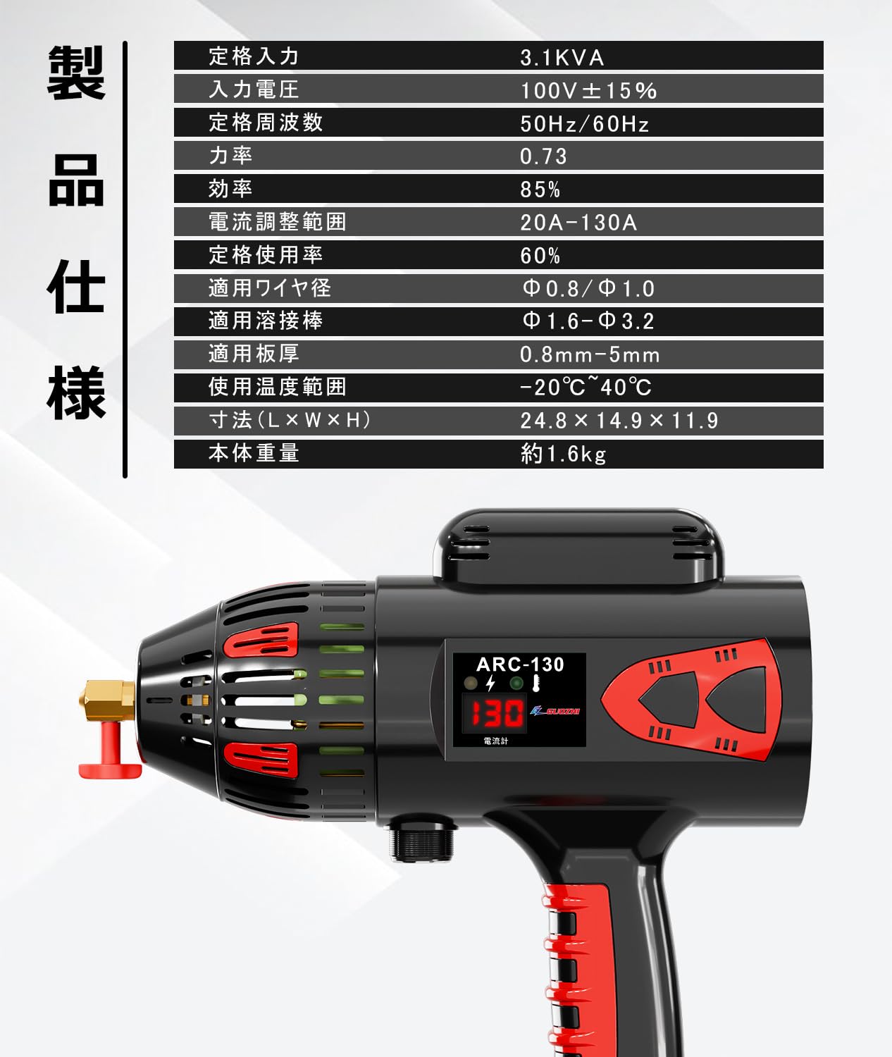 【在庫処分】GZ GUOZHI 溶接機 100v アーク溶接機 130A ハンドヘルド溶接機 インバーター直流 家庭用 溶接機 日本語説明書付き 小型 軽量 初心者向け ARC-130 | GIGATERA