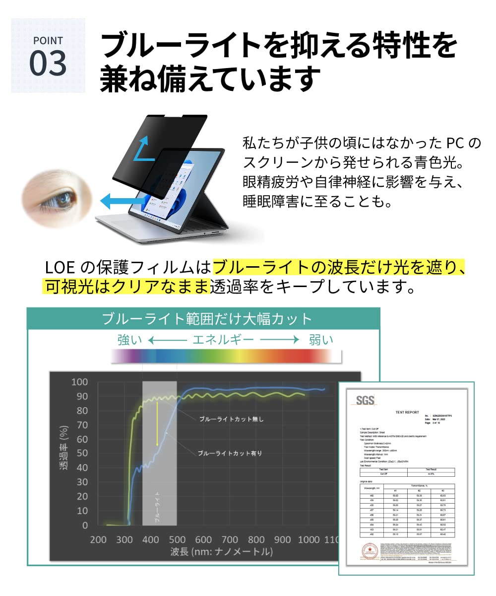 LOE(ロエ) Surface Laptop Studio 2 [14.4インチ] 覗き見防止 保護フィルム 【マグネット式】 プライバシーフィルター ブルーライトカット 反射防止 アンチグレア (サーフェスラップトップスタジオ) 1枚