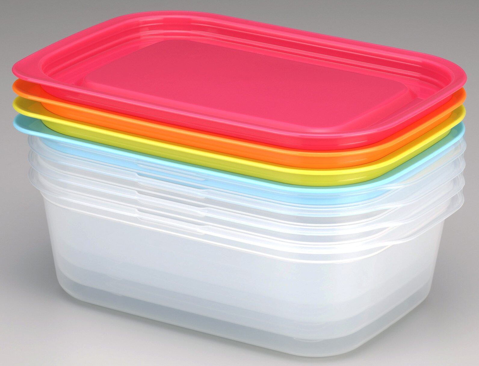イノマタ化学 電子レンジ容器 楽ちんパック 蓋をしたままレンジ可能 角型 850ml 4個セット カラフル 9803 ピンク・オレンジ・グリーン・ブルー