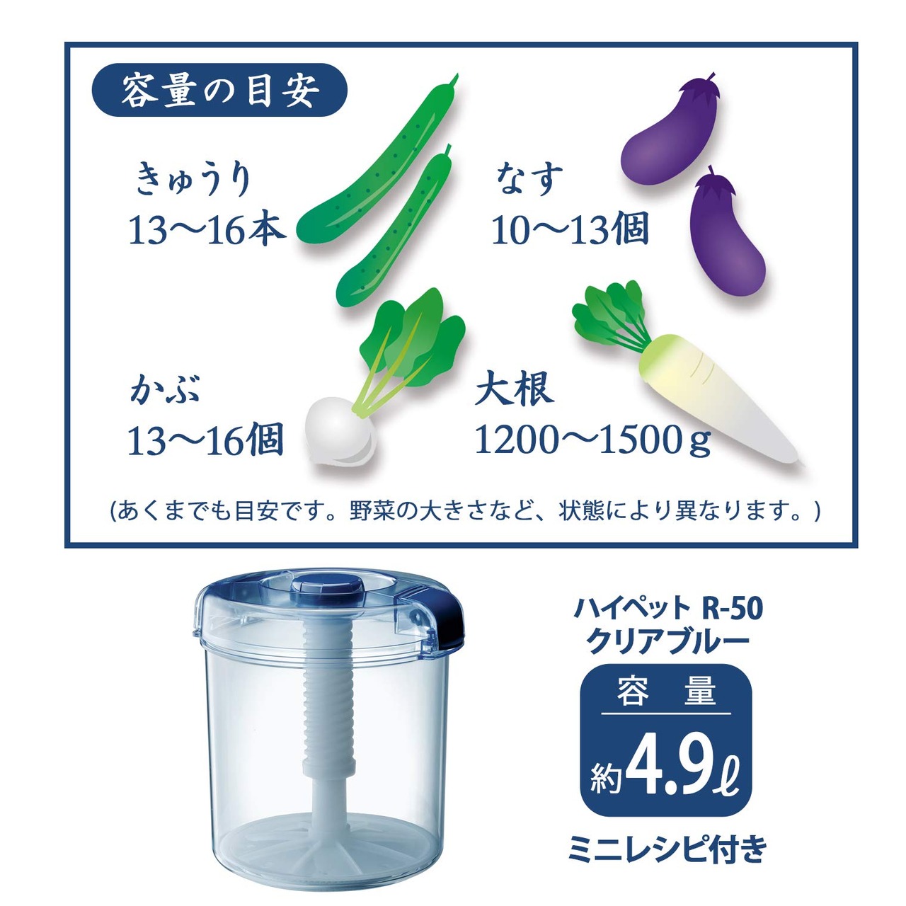 リス 即席漬物容器 丸型 クリアブルー 5L ハイペット レシピ付き 日本製 R-50