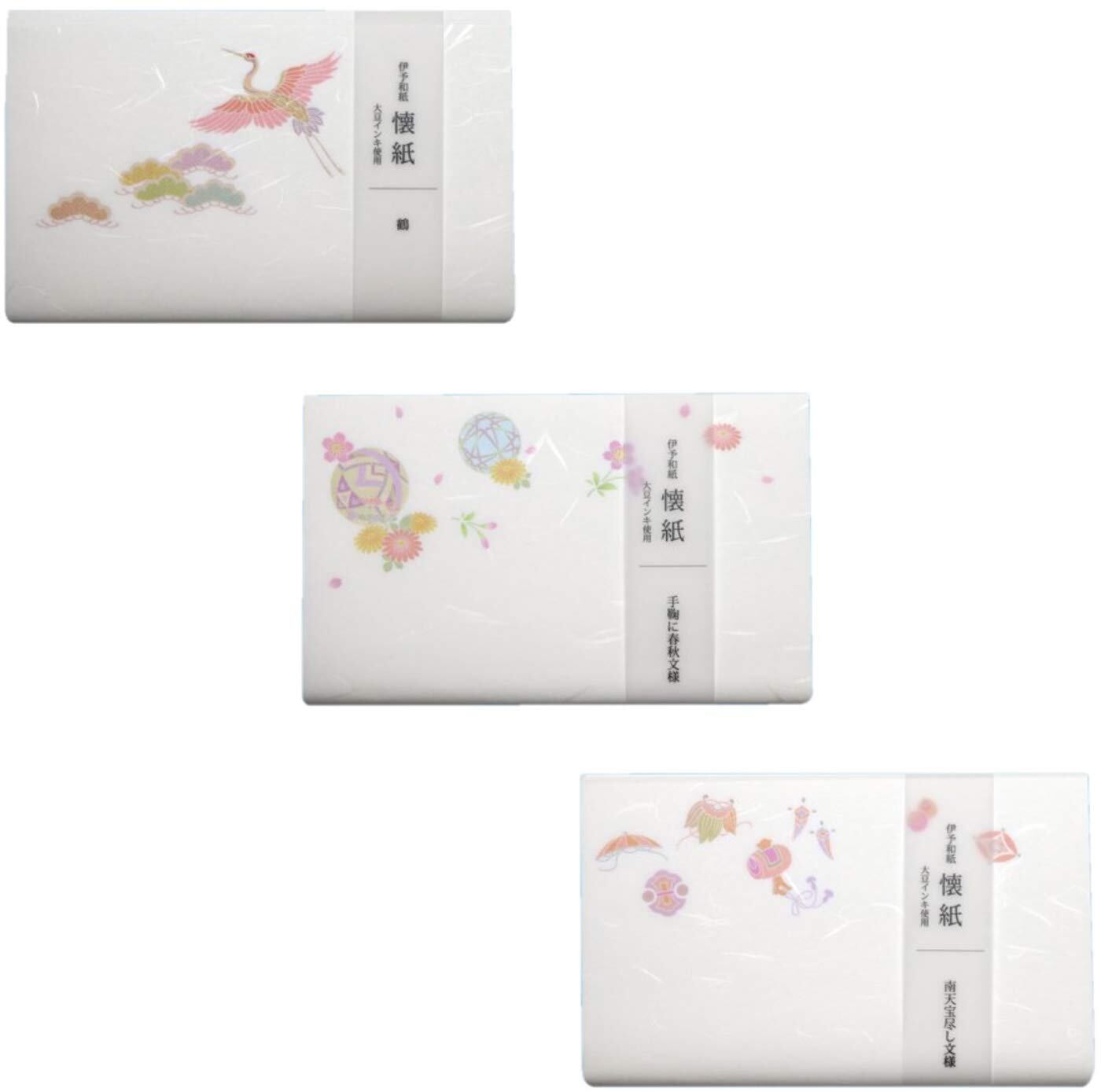 カミイソ 日本製 和紙 懐紙 kimono美 懐紙 3点 (鶴・手鞠に春秋・南天宝尽し)セット 20枚入×3